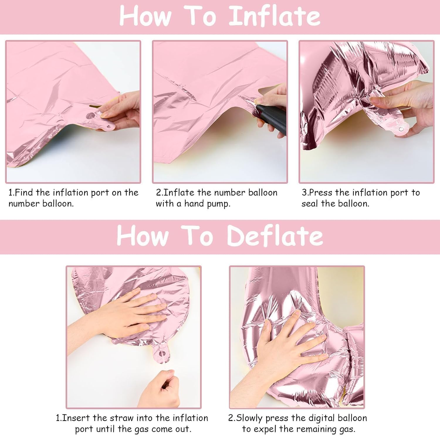 - š Repeated Use š - The pastel pink number 2 balloons set contains a straw that can be used to deflate the foil balloon, simply insert the straw into the valve and press gently until the gas is completely expelled. After use, it can be folded and stored for reuse.