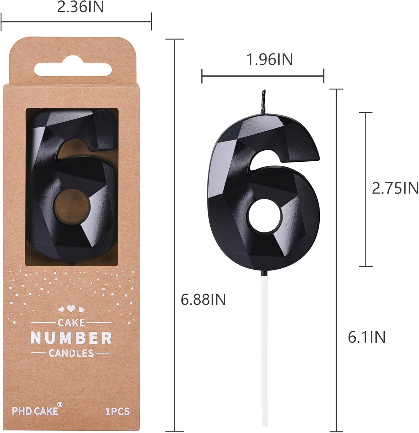 - New: 2.76 Inch Large Crystal Black 6 Number Birthday Candle designed to make your cake and birthday a unique and truly inspiring event.