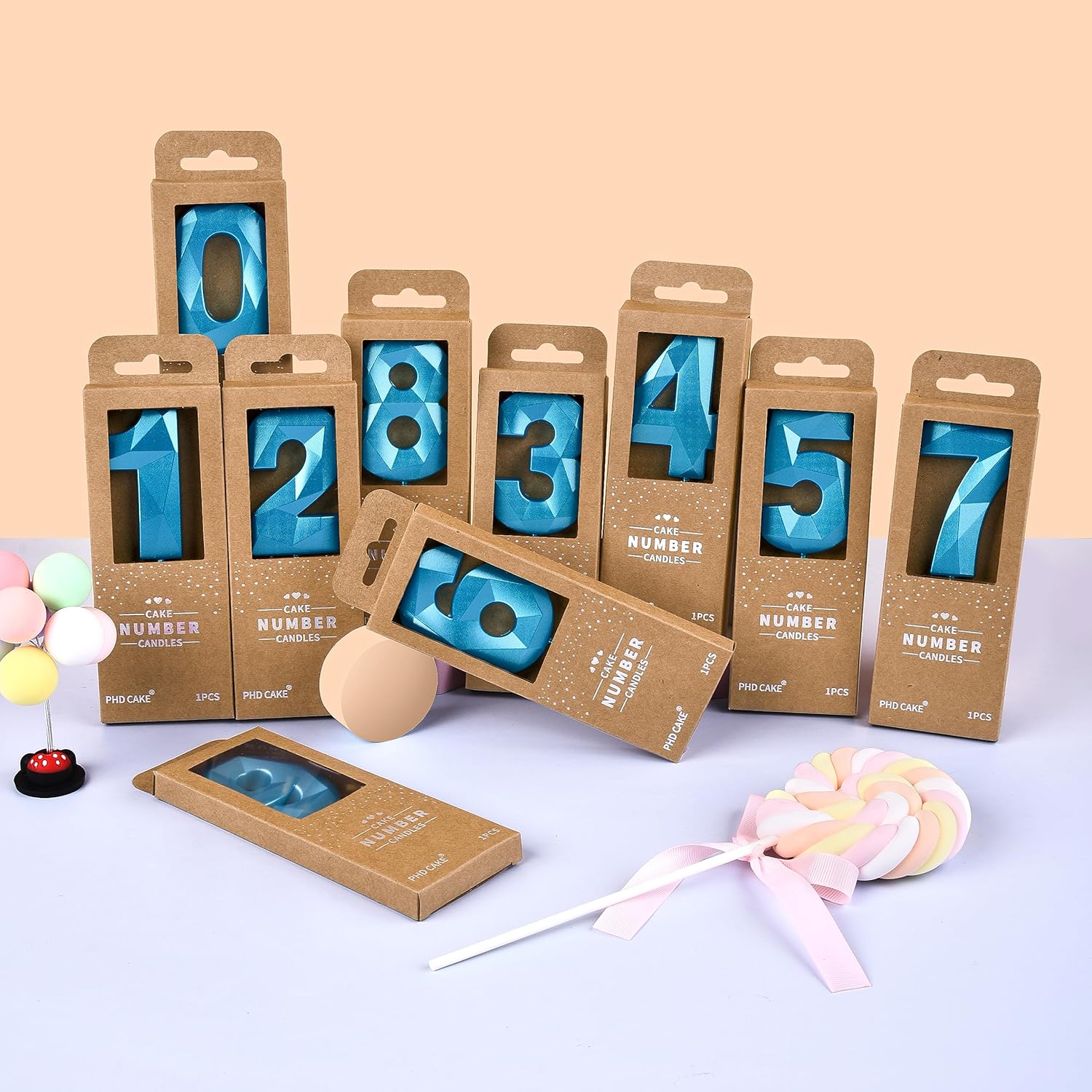 PHD CAKE 2.76 Inch Crystal Blue 4 Number Birthday Candles, Blue Number Candles, Cake Number Candles, Party Celebration