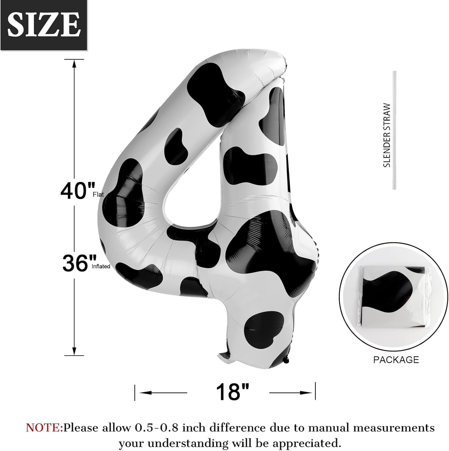 Cow Print Number Balloon Birthday Decorations, 40 inch Number balloon 0-9(Zero-Nine), Cow Balloon for Farm Birthday Party Supplies, Cow Themed birthday party Decorations (Number 4)