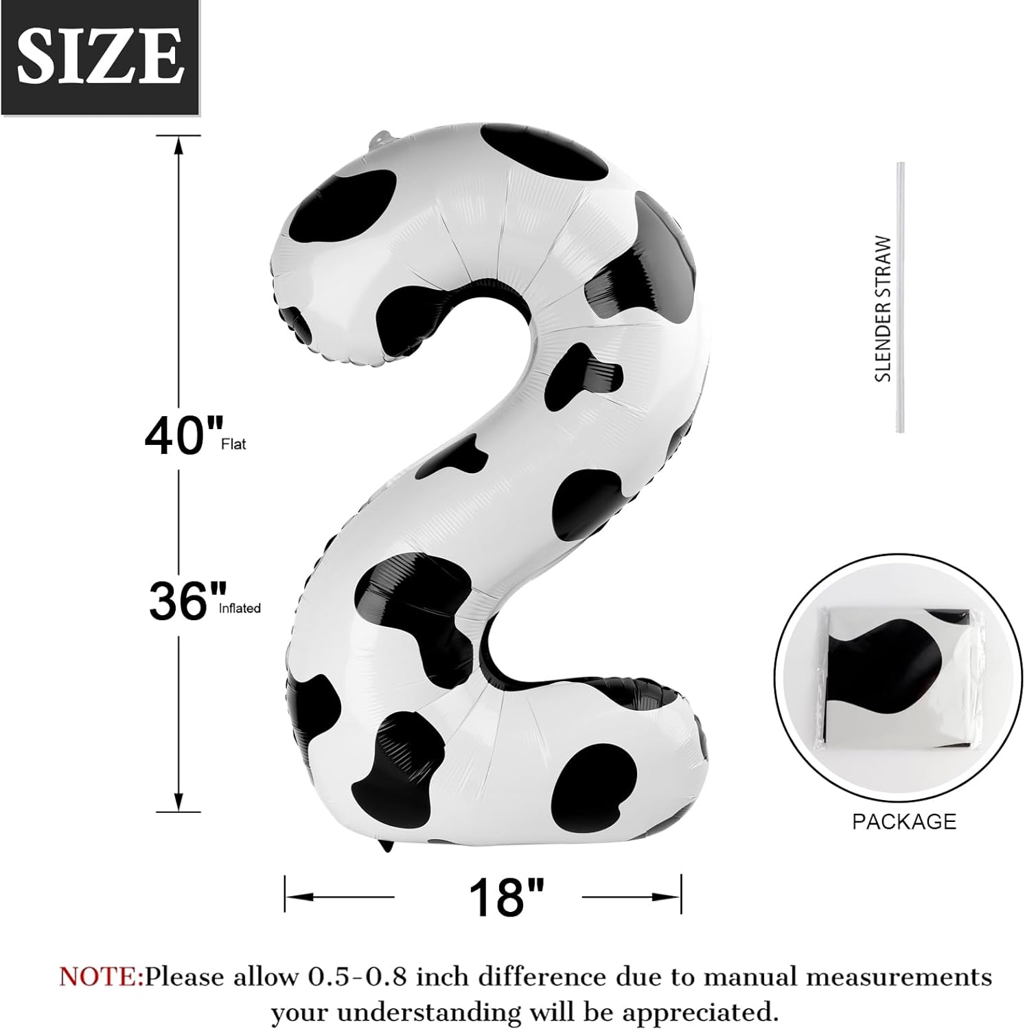 Cow Print Number Balloon Birthday Decorations, 40 inch Number balloon 0-9(Zero-Nine), Cow Balloon for Farm Birthday Party Supplies, Cow Themed birthday party Decorations (Number 2)