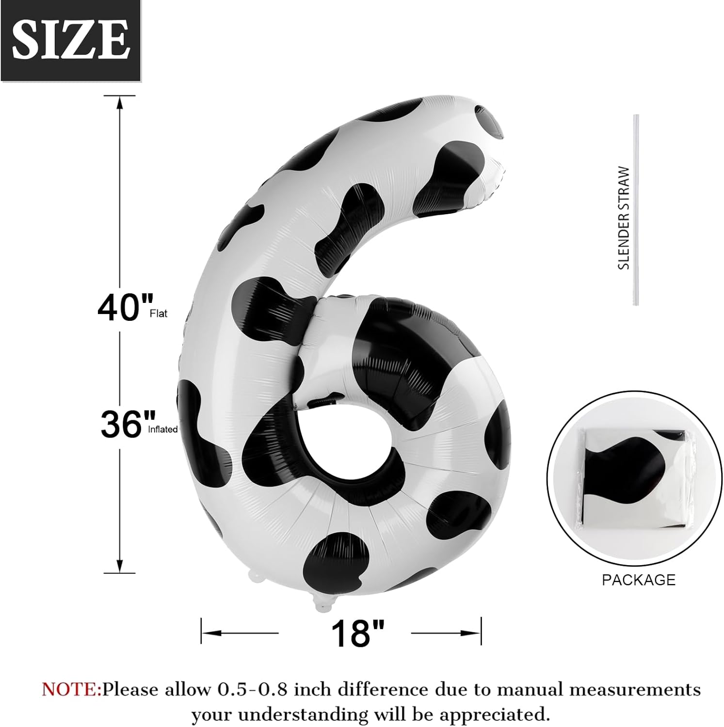 Cow Print Number Balloon Birthday Decorations, 40 inch Number balloon 0-9(Zero-Nine), Cow Balloon for Farm Birthday Party Supplies, Cow Themed birthday party Decorations (Number 6)