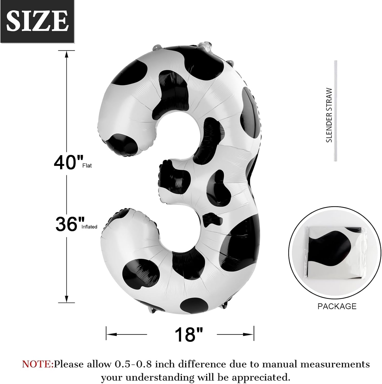 Cow Print Number Balloon Birthday Decorations, 40 inch Number balloon 0-9(Zero-Nine), Cow Balloon for Farm Birthday Party Supplies, Cow Themed birthday party Decorations (Number 3)