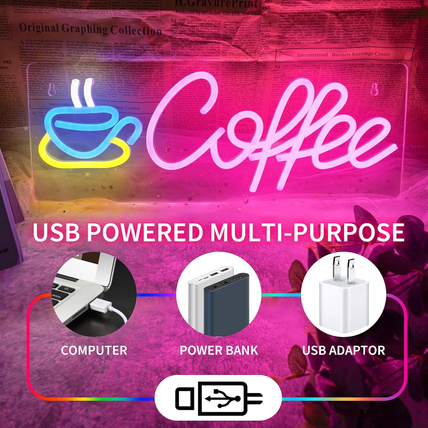- 😘 Safe Durable and USB Powered: This coffee signs for coffee station adopt 5V low voltage design, Just connect the USB interface to your adapter, computer or power bank, or any device with a USB port. Compared with the old-fashioned glass neon signs, LED neon tubes higher brightness, lower energy consumption, do not heat up without the risk of glass breakage, very suitable for commercial or home use.