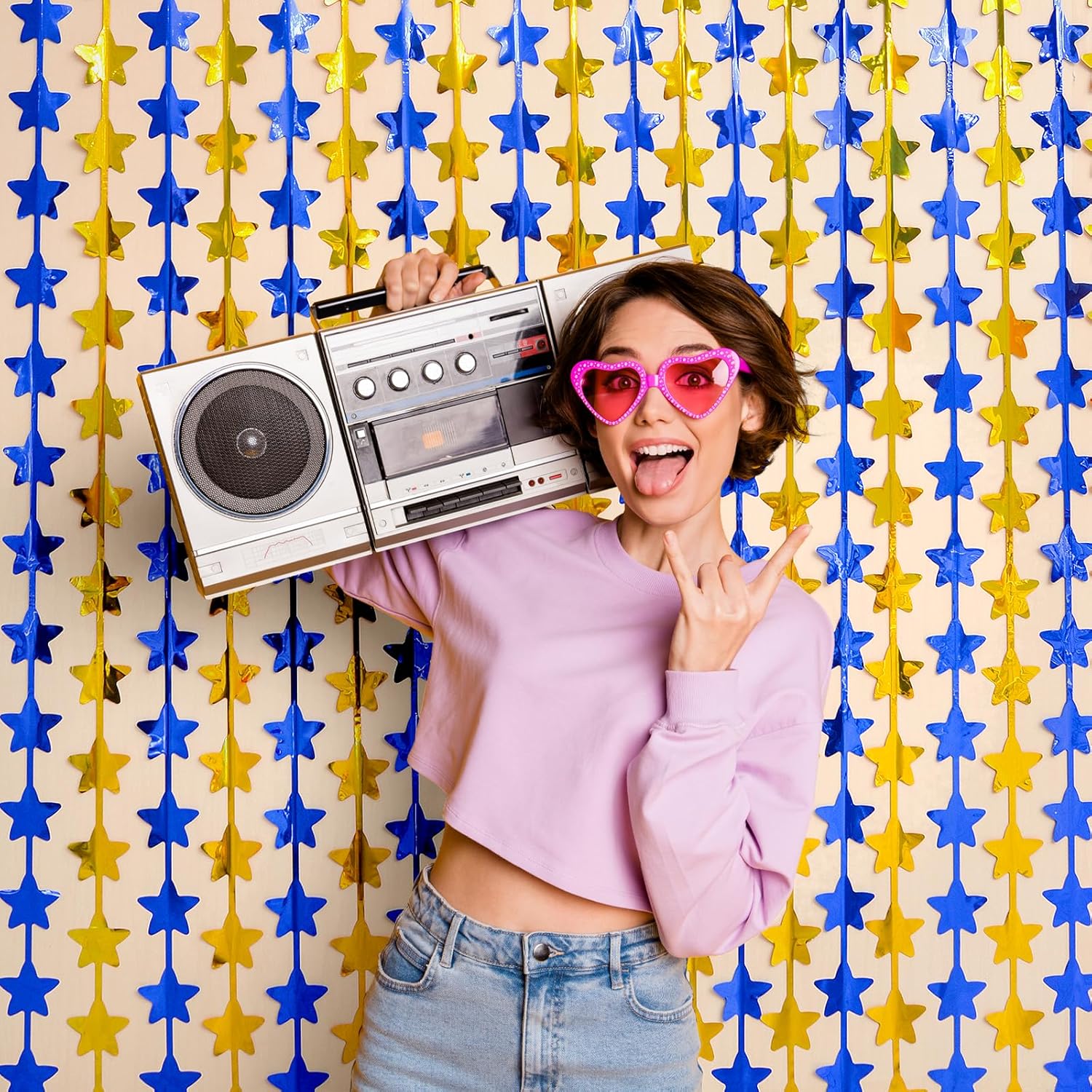 - 💛【 TINSEL MATERIAL 】: These blue and gold star metallic foil fringe curtains are made of tinsel. They are lightweight and durable fringe curtains. These high-quality fringe curtains are tough, unbreakable, and can be used for a long time.