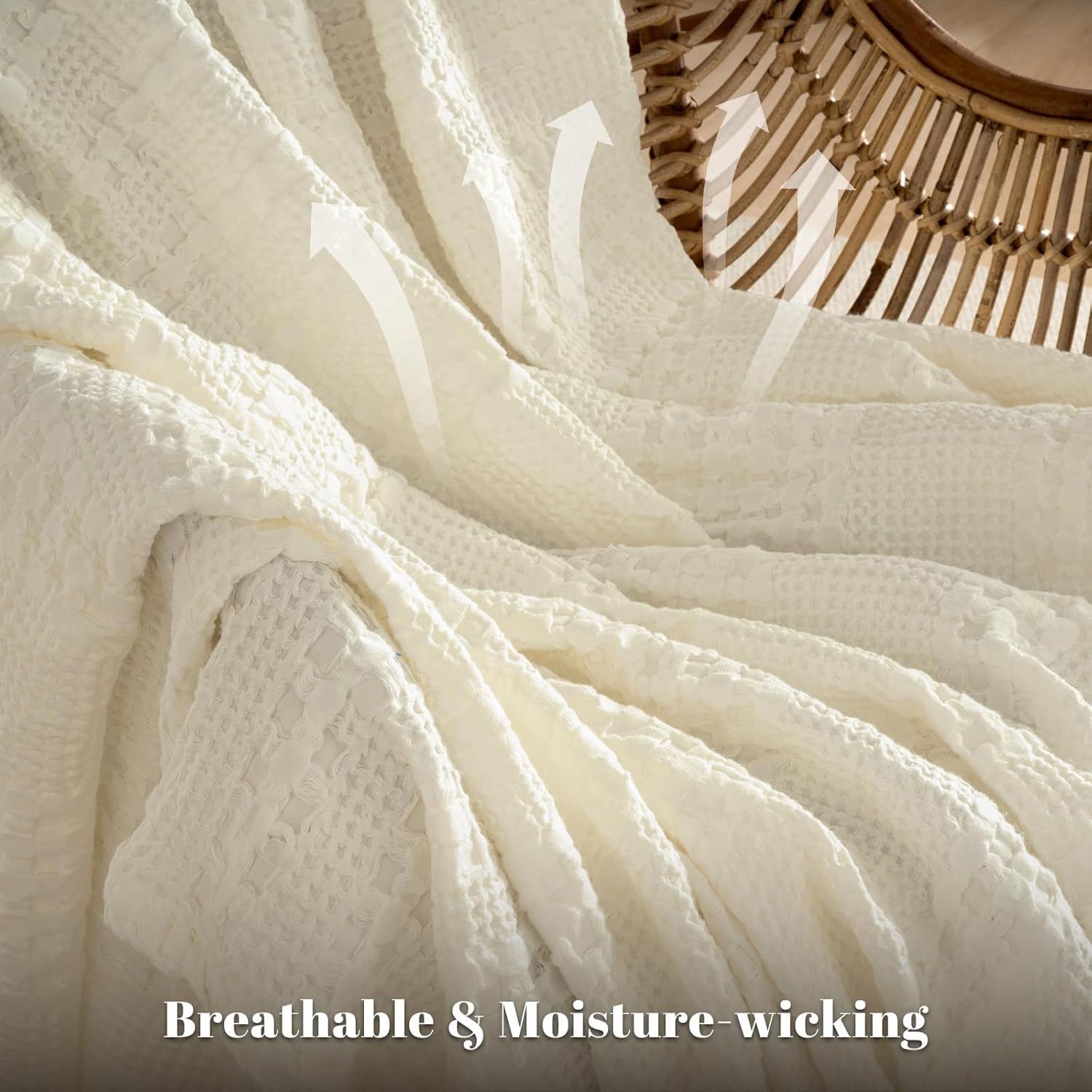 PHF 100% Cotton Waffle Weave Blanket King Size for Bed, Soft Lightweight & Breathable, All-Season Comfort, Luxury Aesthetic Woven Bedding for Home Decor, 108"x90", Cannoli Cream