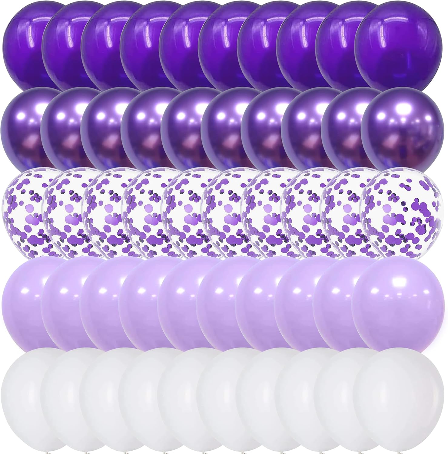 Togvu Balloon Purple and White, 60 Packs 12 Inch Dark Light Metallic Chrome Confetti Balloons Set for Girls Women Wedding Birthday Baby Shower Bridal Bachelorette Decorations