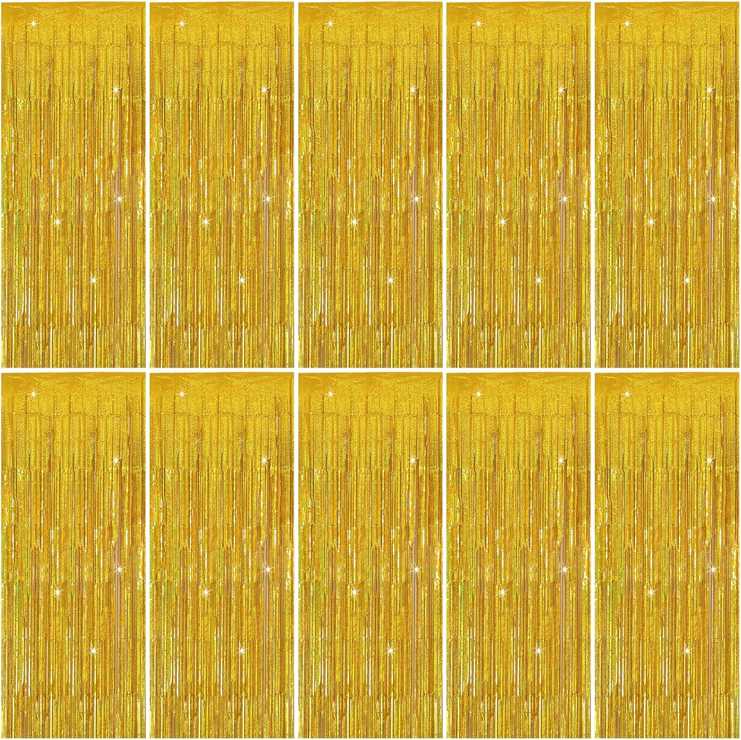 Tinsel Curtain Party Backdrop Gold Birthday Party Decorations 10 Packs Glitter Foil Fringe Curtain Party Decor Streamers Photo Booth for Birthday Christmas Wedding Halloween Graduation Decorations