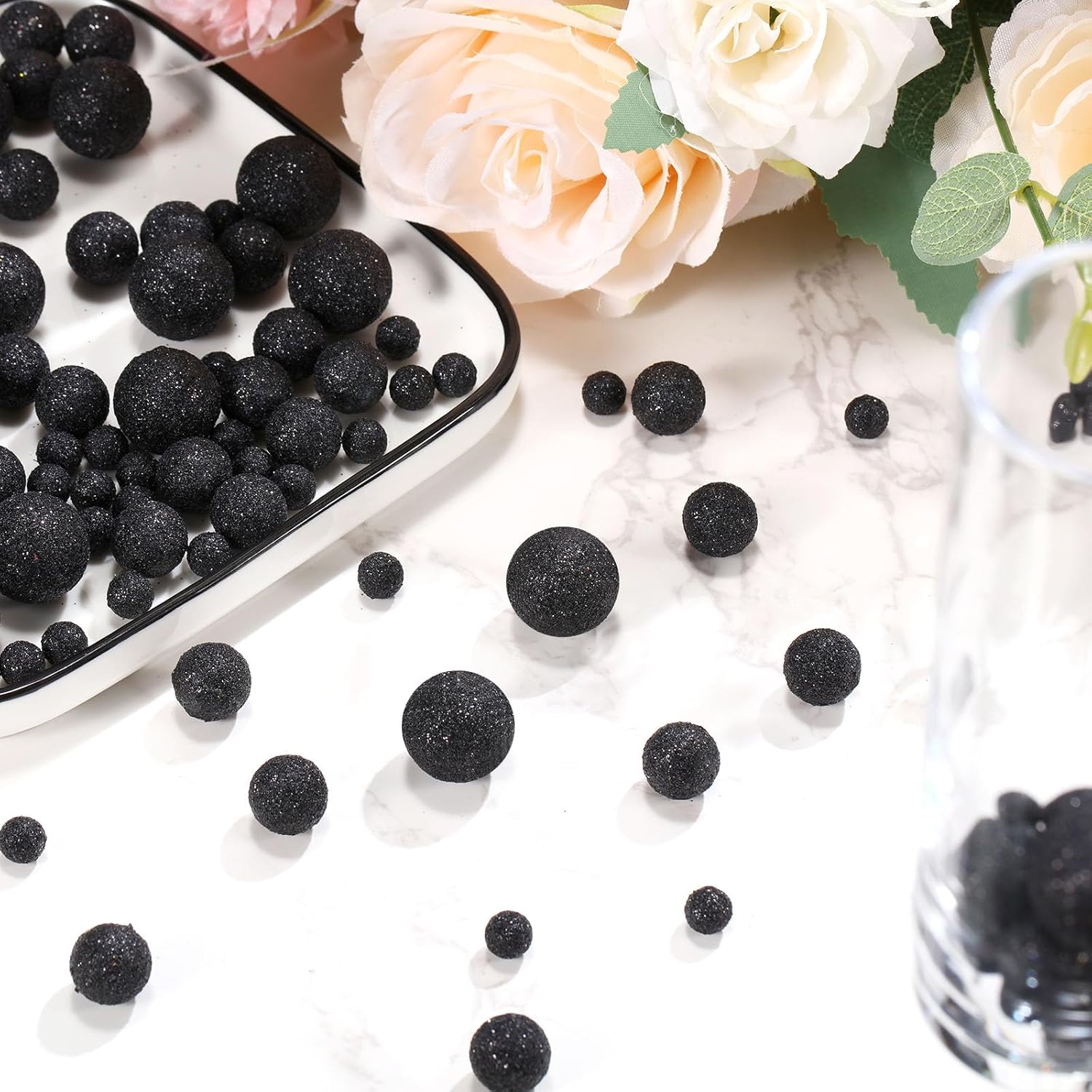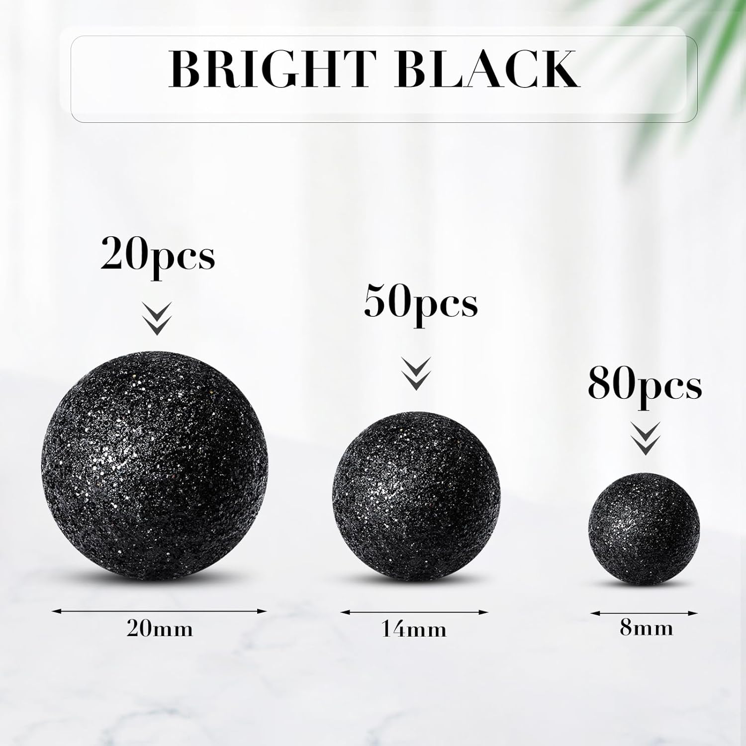 150 Pieces Vase Filler Faux Pearls Vase Makeup Beads No Hole Gloss Bead Mixed Sizes Round Pearl for Home Party Wedding Decor, 8/14/20 mm(Glitter Black)
