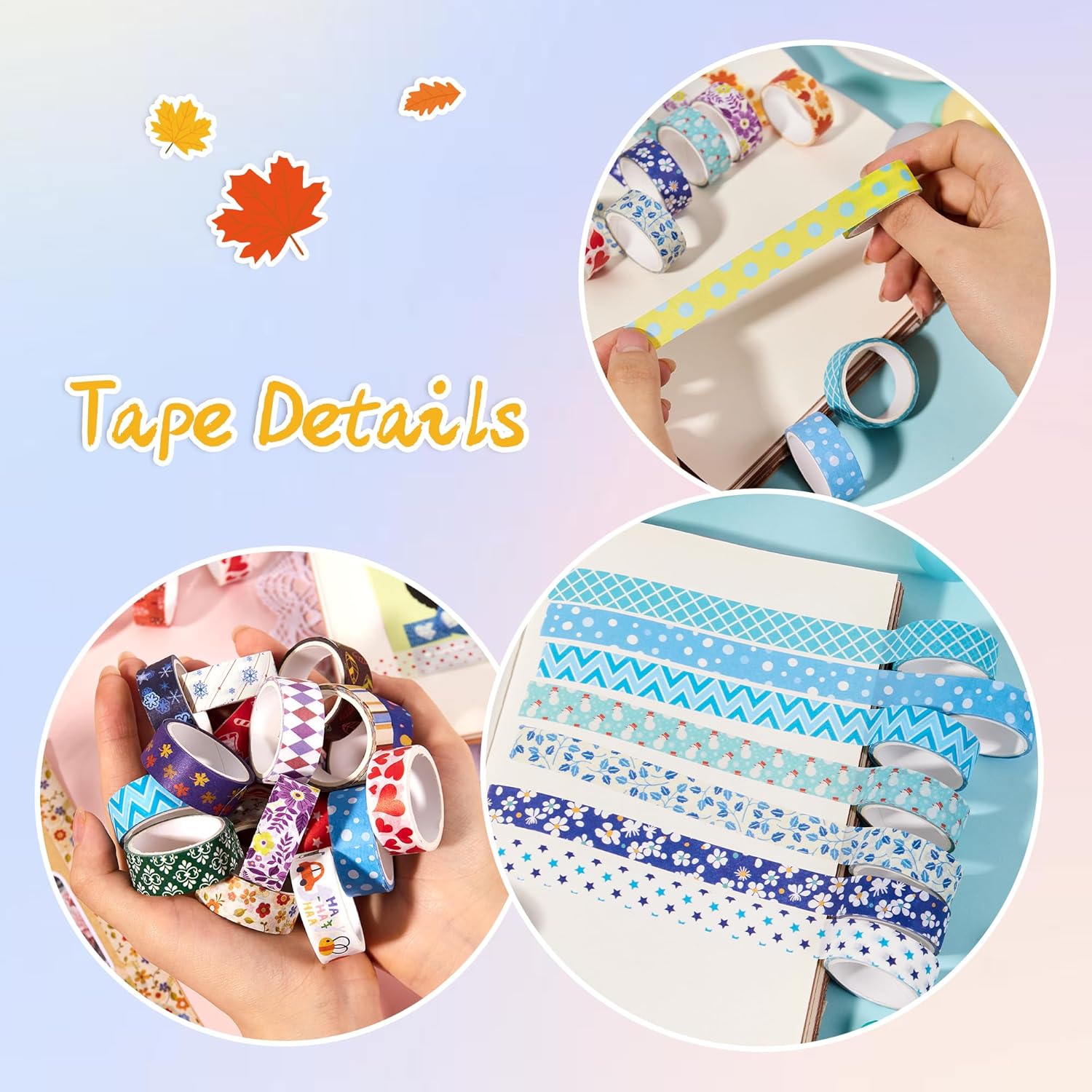 - 🌈Decorative masking DIY tapes: perfect for decorating your scrapbook, bullet journals, photo albums, day-planner, diaries, postcards, cards, file folders, envelopes,wrapping, wall, gifts, any crafts and more!