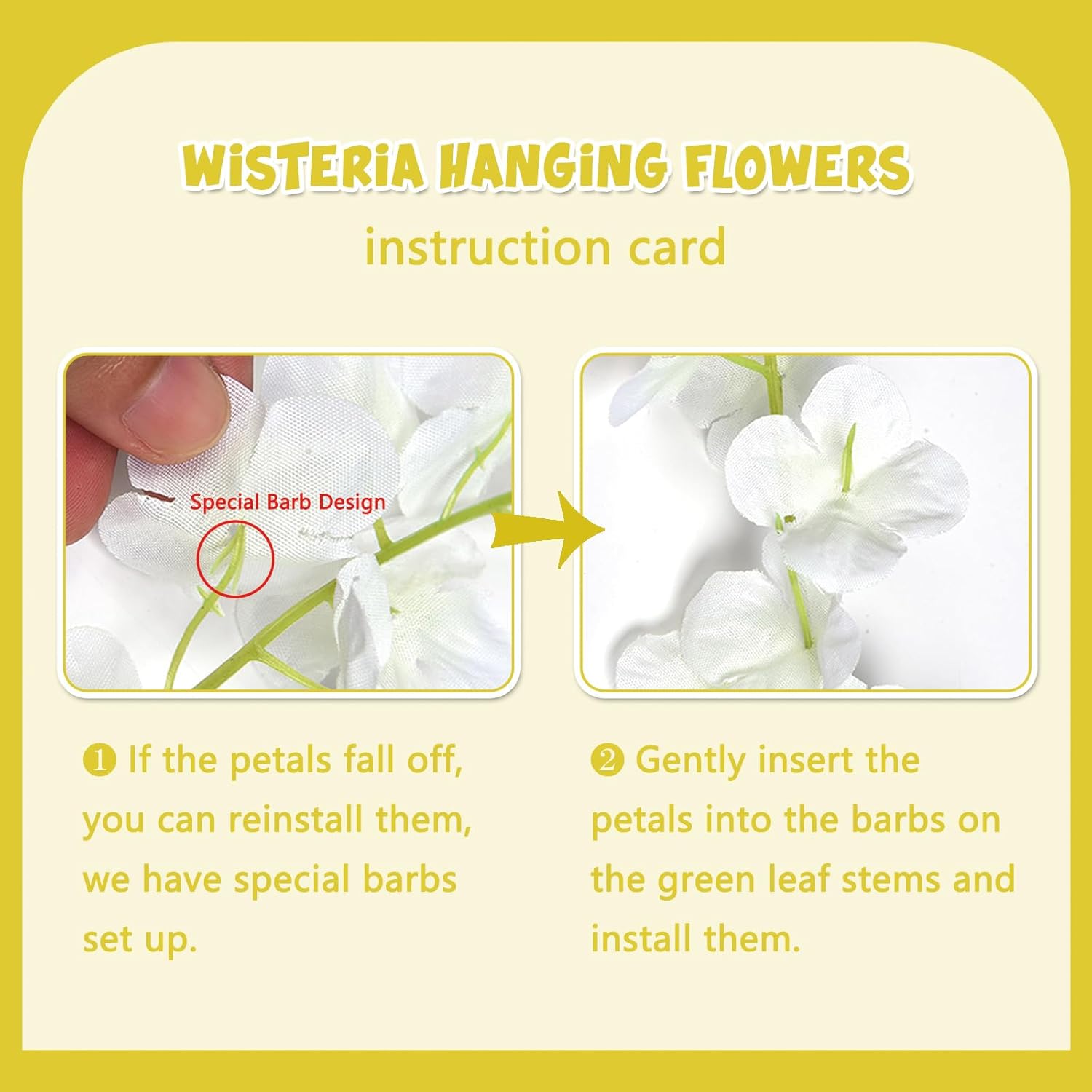 - 【Easy to Install】The yellow hanging garland flowers stem are made of durable metal wire and covered with plastic. You can bend the wisteria flower in any shape to satisfy your decoration imagination without damaging it. And the wisteria flower is very easy to install and remove, you can reduce a lot of troubles on installation.