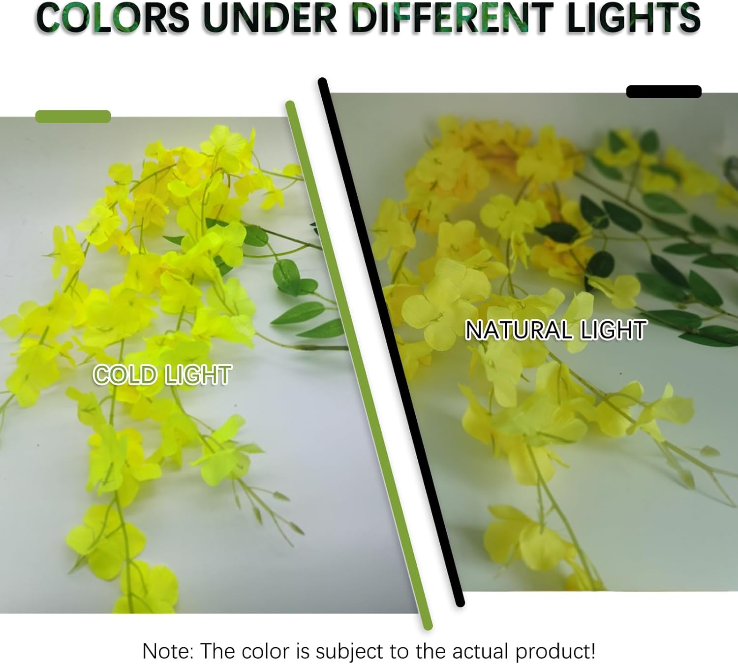 - 【Suitable for A Variety of Scenes】Yellow Wisteria Garland flowers have a purely natural pattern design, realistic and natural, suitable for decorating living rooms, bedrooms, study rooms, and windowsill places, so that your living space into the natural atmosphere, become more comfortable. At the same time, they are also suitable for decorating dinner parties, birthday parties, weddings, and other places, to create a warm atmosphere, so that your guests leave a good and unforgettable memory.