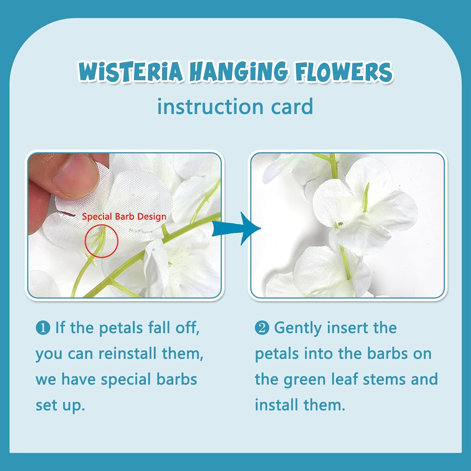 - 【Wisteria Garland】Whether you decorate beautiful lake blue wisteria hanging flowers indoors or outdoors, you can achieve a magical decorative effect. Decorating the interior makes your home look full of life while decorating the exterior makes the environment more springy.