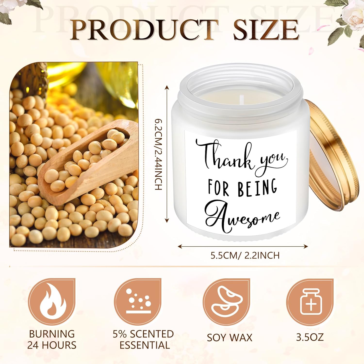 - Warm Design for Your Loved One: the white bottle of our scented decorative candles is printed with words [Thank you for being awesome], inspirational to express your care and blessings, suitable for administrative assistants, colleagues, employees, teachers, colleagues, family members, etc., on Valentine's Day, Christmas, birthday, retirement, graduation and other occasions
