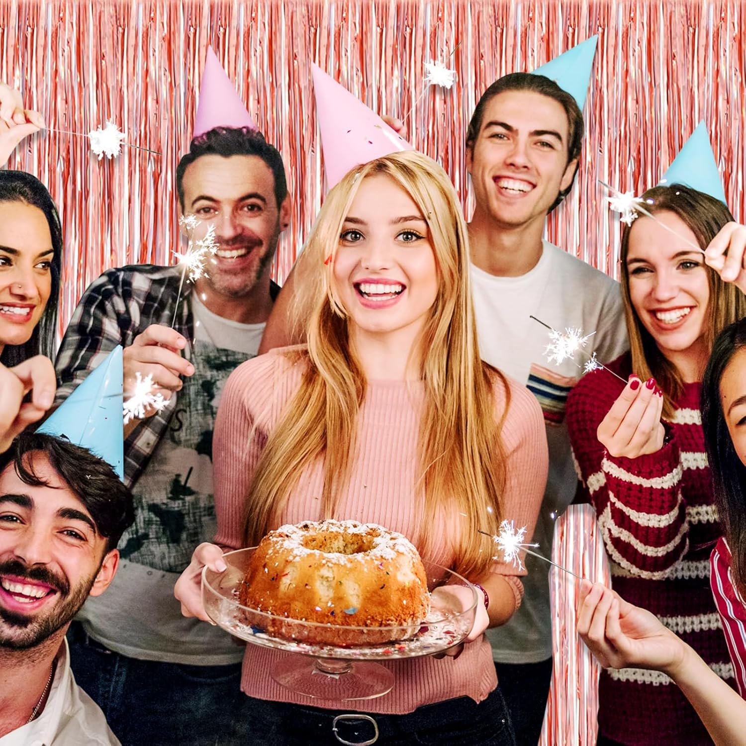 3 Pack Rose Gold Foil Fringe Curtain Backdrop, 3.28Ft x 8.2Ft Metallic Tinsel Foil Fringe Streamer Curtains for Photo Booth, Christmas Day, Thanksgiving, Wedding, New Year Party Decorations