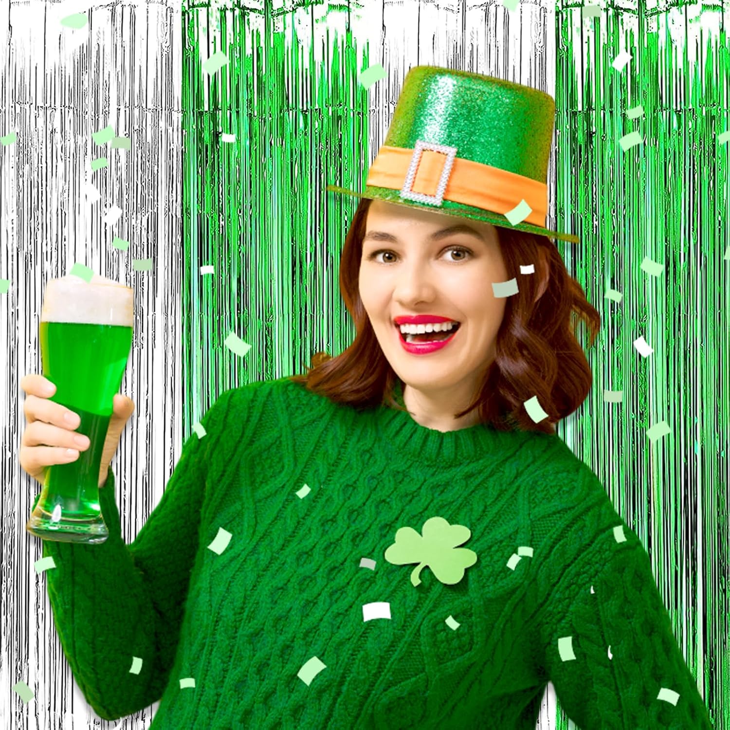 3 Pack Silver Green Foil Fringe Curtain Backdrop, 3.28Ft x 8.2Ft Metallic Tinsel Foil Fringe Streamer Curtains for Photo Booth, Christmas Day, Thanksgiving, Wedding, New Year Party Decorations