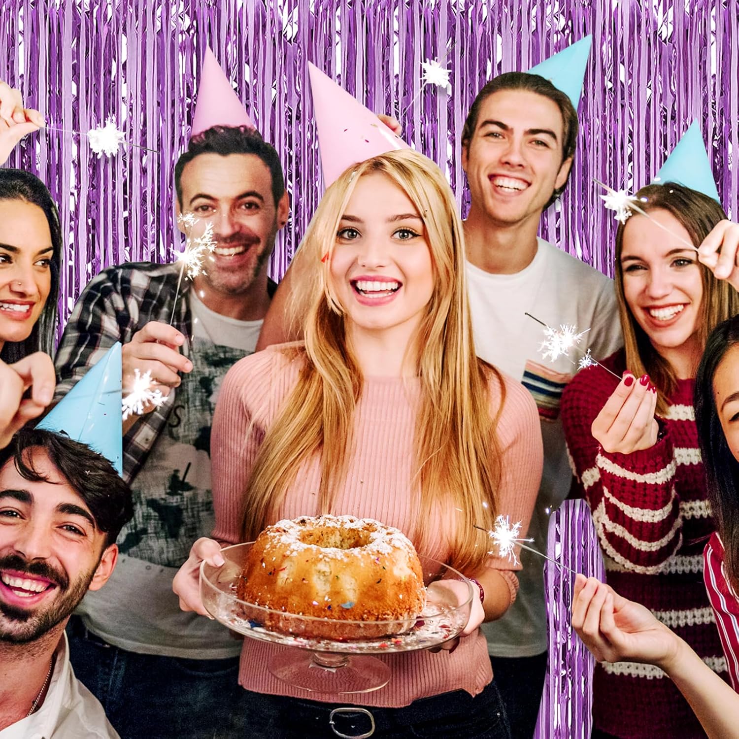 3 Pack Light Purple Foil Fringe Curtain Backdrop, 3.28Ft x 8.2Ft Metallic Tinsel Foil Fringe Streamer Curtains for Photo Booth, Christmas Day, Thanksgiving, Wedding, New Year Party Decorations