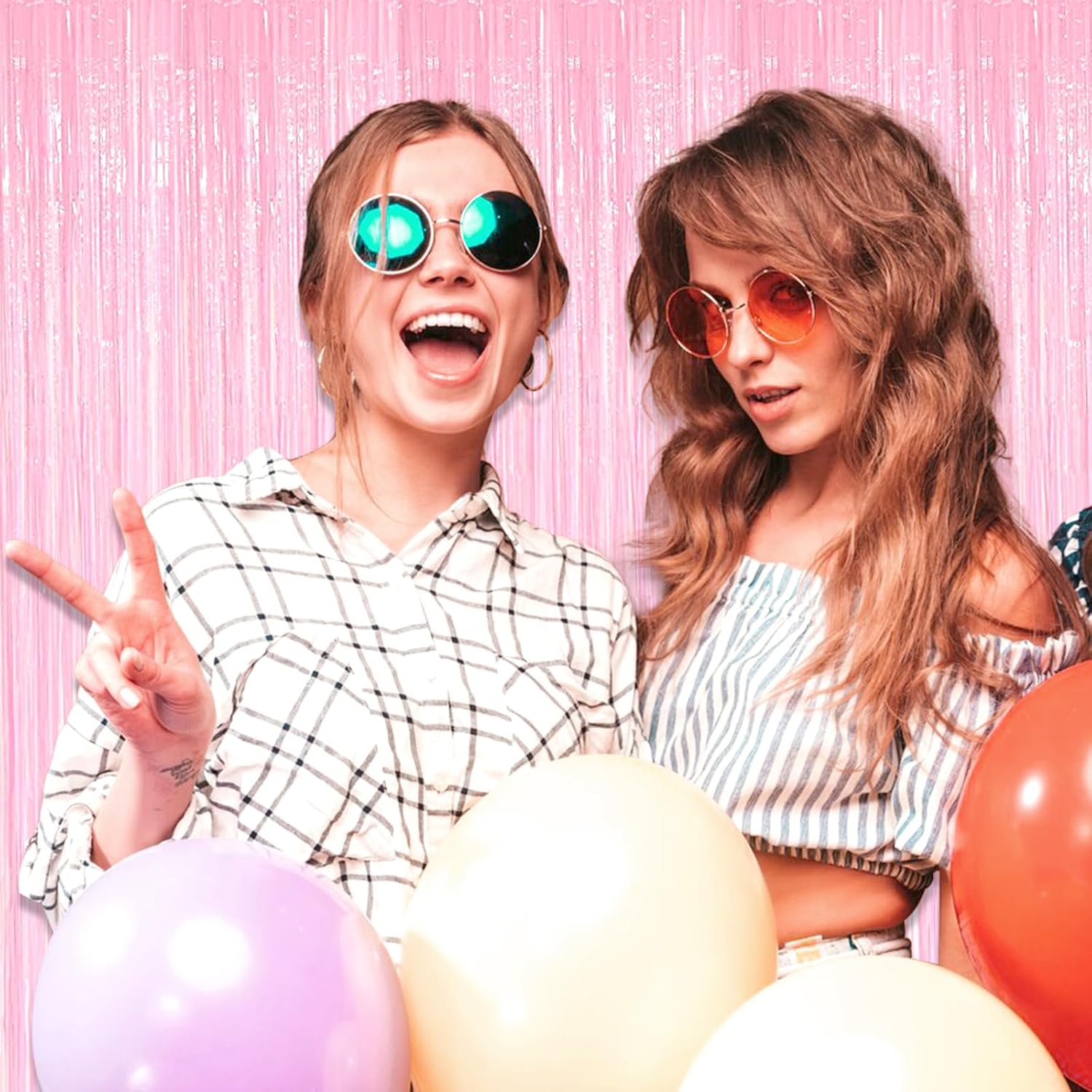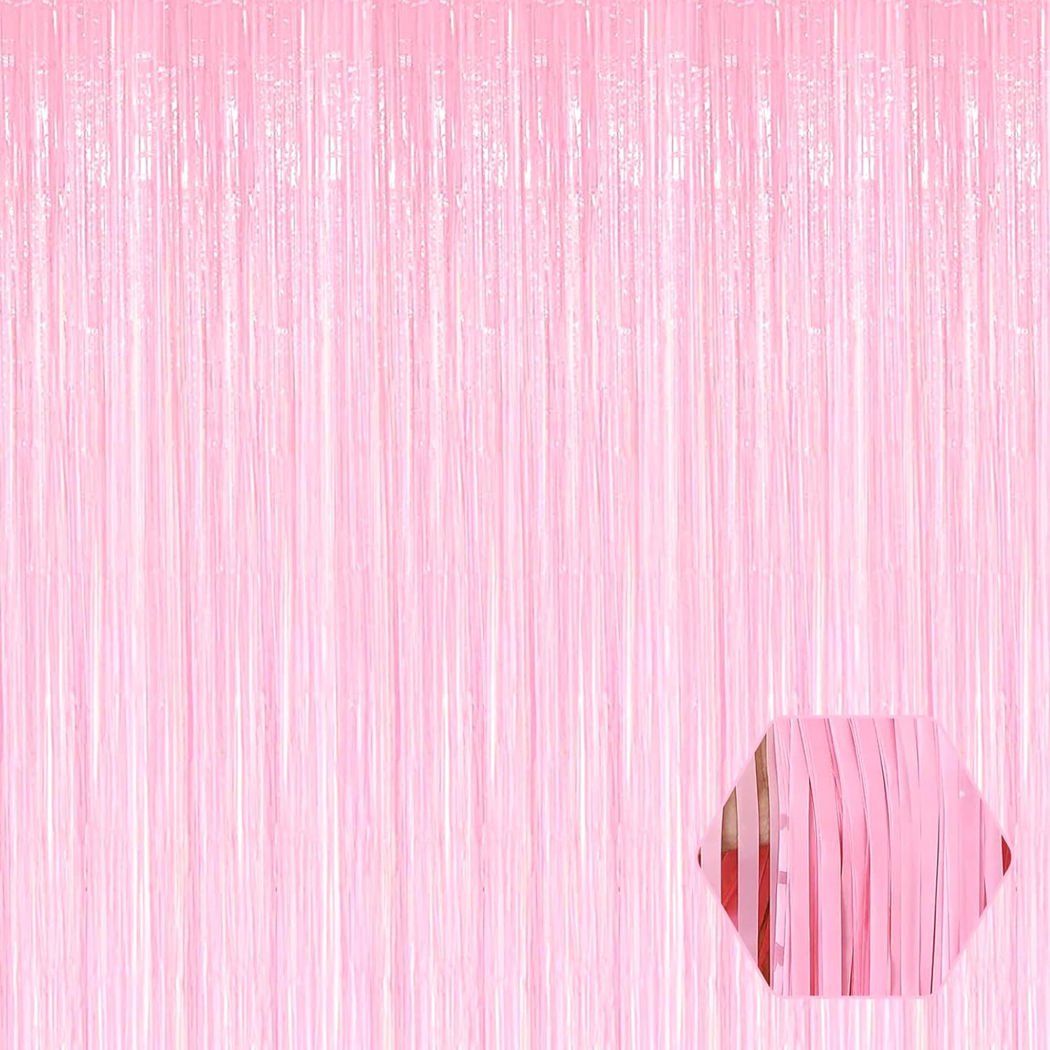3 Pack Macaron Pink Foil Fringe Curtain Backdrop, 3.28Ft x 8.2Ft Metallic Tinsel Foil Fringe Streamer Curtains for Photo Booth, Christmas Day, Thanksgiving, Wedding, New Year Party Decorations