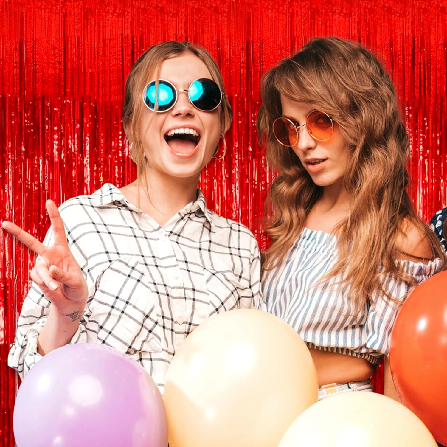 - Easy To Assemble | Strong Adhesive | Not Easy Fade : The foil fringe curtain backdrop party decorations come with double-sided adhesive tape, easy to use, just tear off the back of adhesive tape, then paste this streamers backdrop curtains on the top of wall, window, table, or as door fringe decoration.