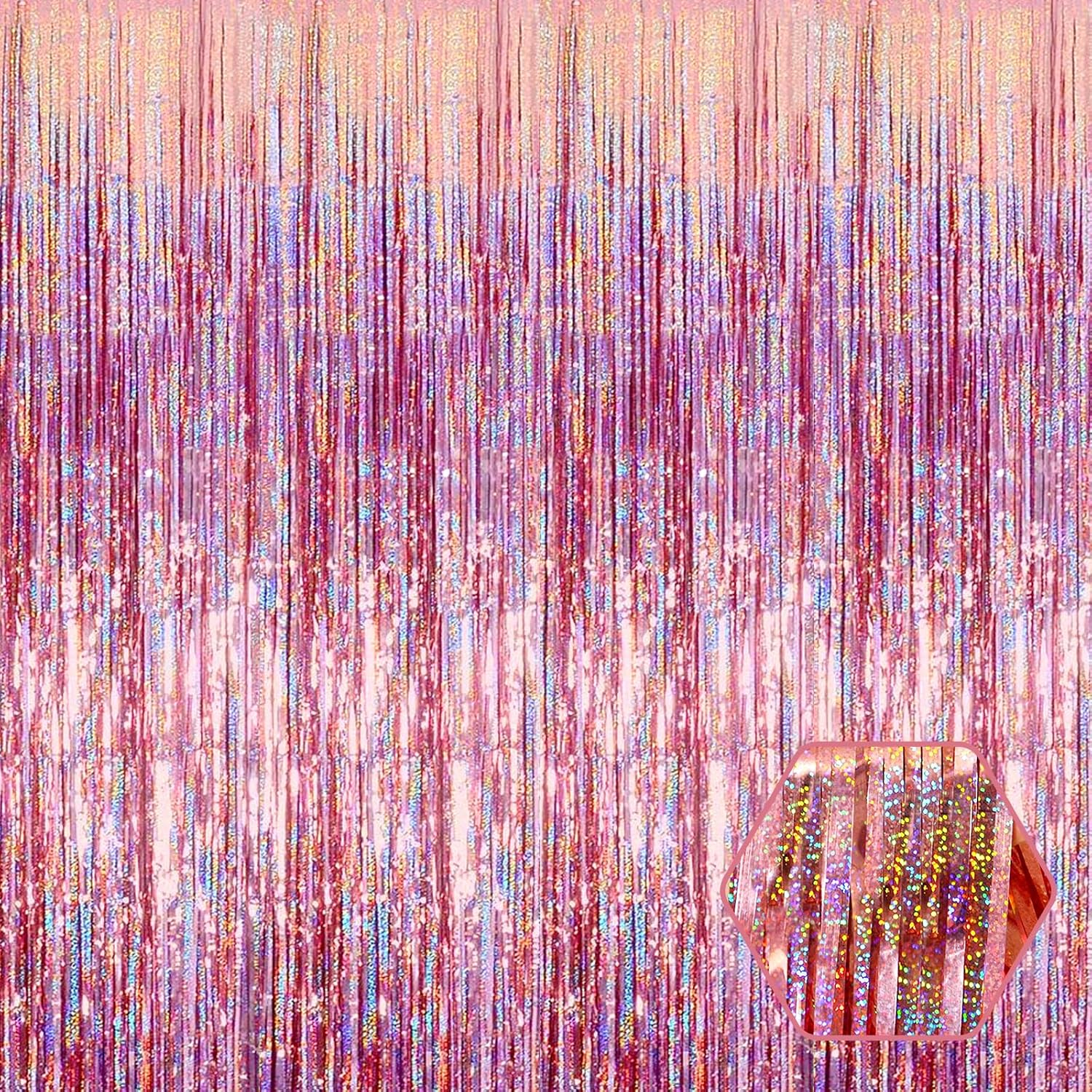 3 Pack Rose Gold Foil Fringe Curtain Backdrop, 3.28Ft x 8.2Ft Metallic Tinsel Foil Fringe Streamer Curtains for Photo Booth, Christmas Day, New Year, Wedding Party Decorations