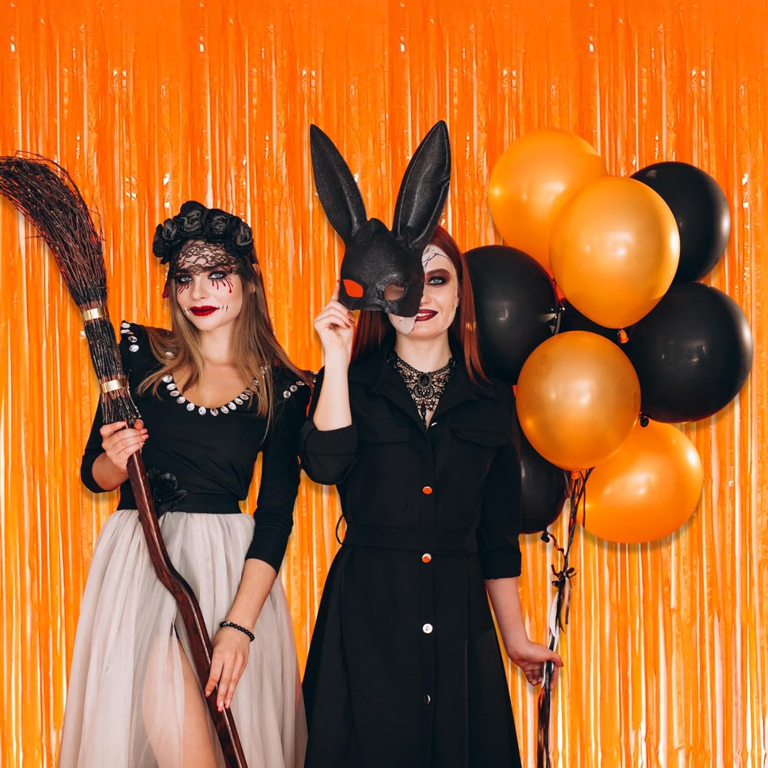 3 Pack Macaron Orange Foil Fringe Curtain Backdrop, 3.28Ft x 8.2Ft Metallic Tinsel Foil Fringe Streamer Curtains for Photo Booth, Mother's Day, Easter, Birthday, Wedding Party Decorations
