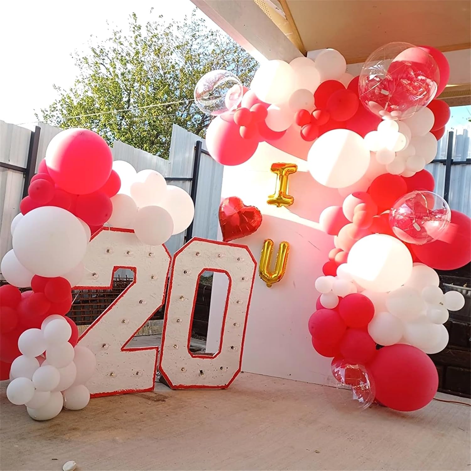 - š Red White Confetti Balloons - You will get 35 pieces 12 inch latex party balloons set, includes matte red 13pcs, matte white 12pcs, red confetti 10pcs, come with 1pc white balloon ribbon. Perfect for girls women birthday baby bridal shower wedding Valentine's Day christmas party decorations supplies.