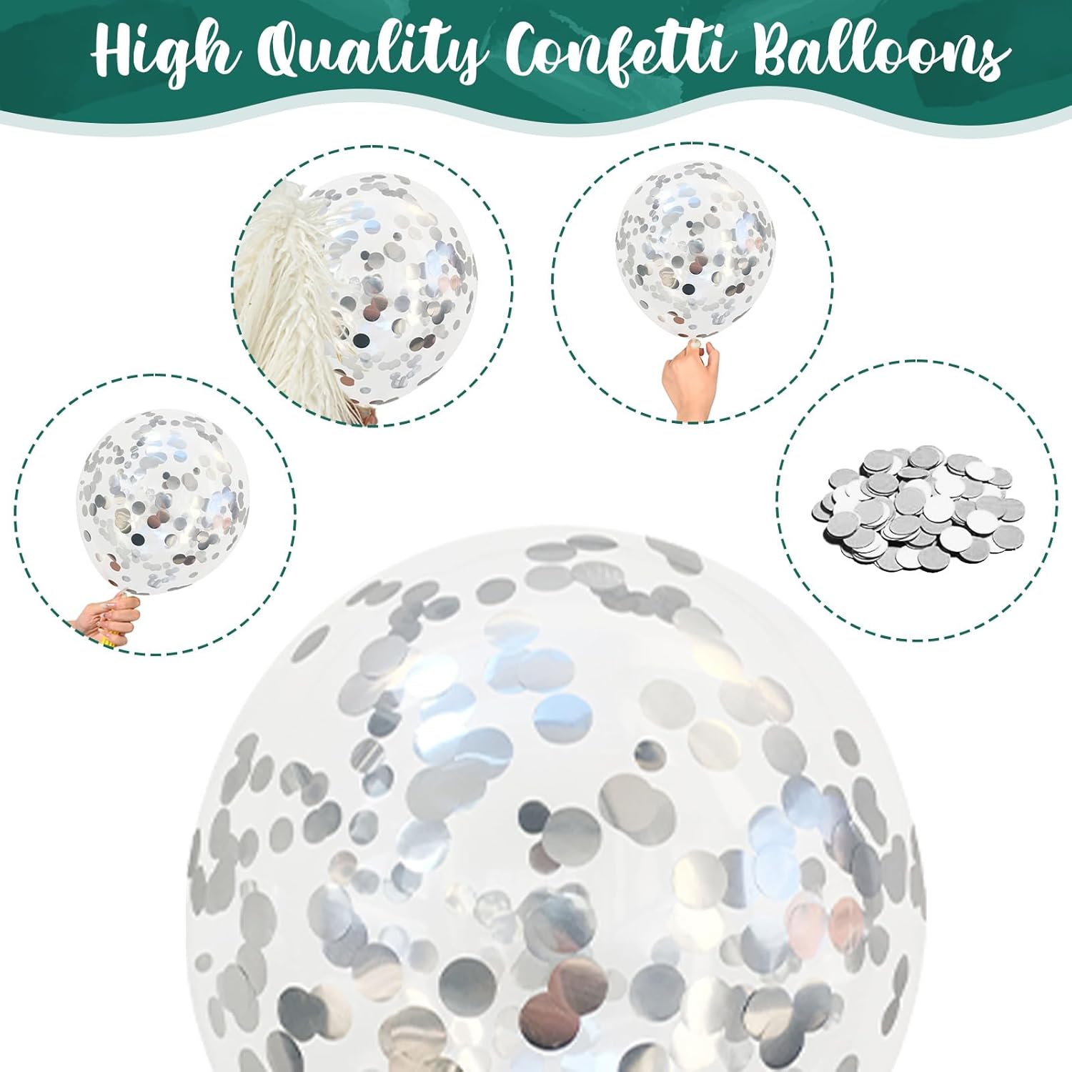 - š Easy to Use - The teal blue green and silver balloons support both air and helium. You can blow them up with a mouth, pump or helium. After inflating, shake the confetti balloon and gently rub it with your hair or dry fabric to make the confetti stick to the side of the balloon, which can make the balloon look more beautiful. When the party is over, you can pop the balloons to let the confetti fall, adding fun to the party.