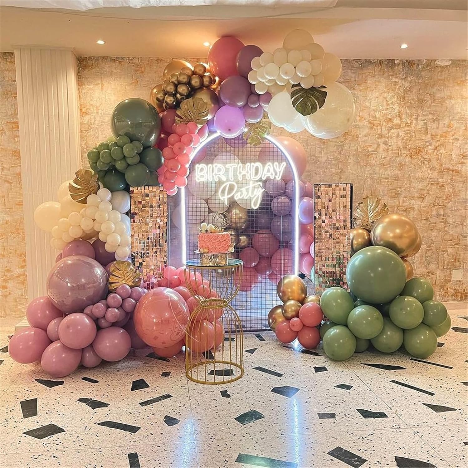 - š Enjoy Party Time - Our dusty sage green pink latex balloons are suitable for many indoor events and outdoor occasions and can add atmosphere to your party. It is the perfect decoration for happy occasions or celebratory moments such as women girls jungle birthday, baby shower, carnival party, wedding, bridal shower, and other party decoration supplies. Makes your party attractive and romantic.