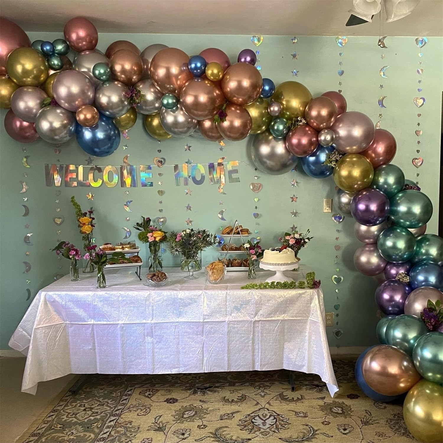 - š Rainbow Metallic Chrome Balloons - You will get 35 pieces 12 inch latex party balloons set, includes metallic purple 5pcs, metallic red 5pcs, metallic green 5pcs, metallic silver 5pcs, metallic gold 5pcs, metallic blue 5pcs, come with 1pc white balloon ribbon. Perfect for birthday baby shower wedding anniversary party decorations supplies.