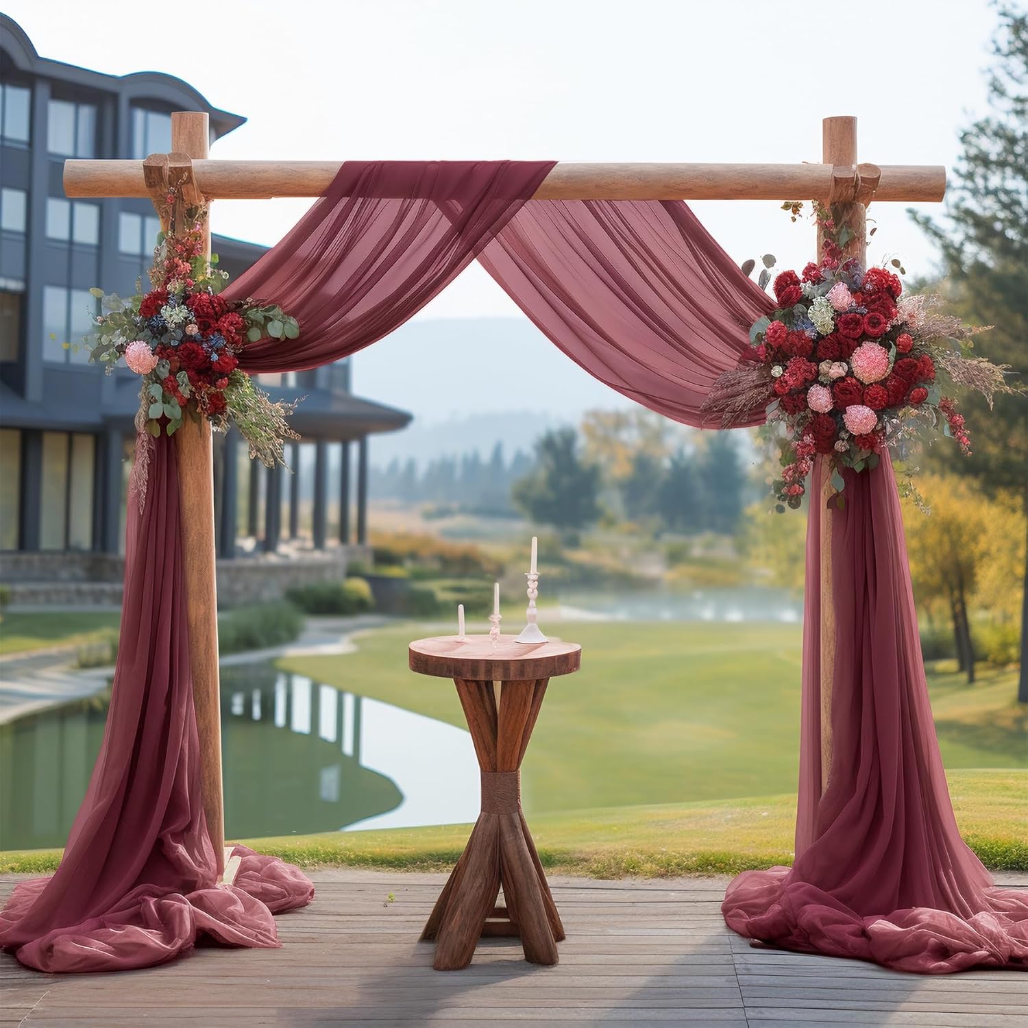 Arch Drapes for Wedding Arch Draping Fabric Burgundy Sheer Backdrop Curtain for Ceremony Bridal Party Decor 19Ft Length x 28" Width 2 Panel
