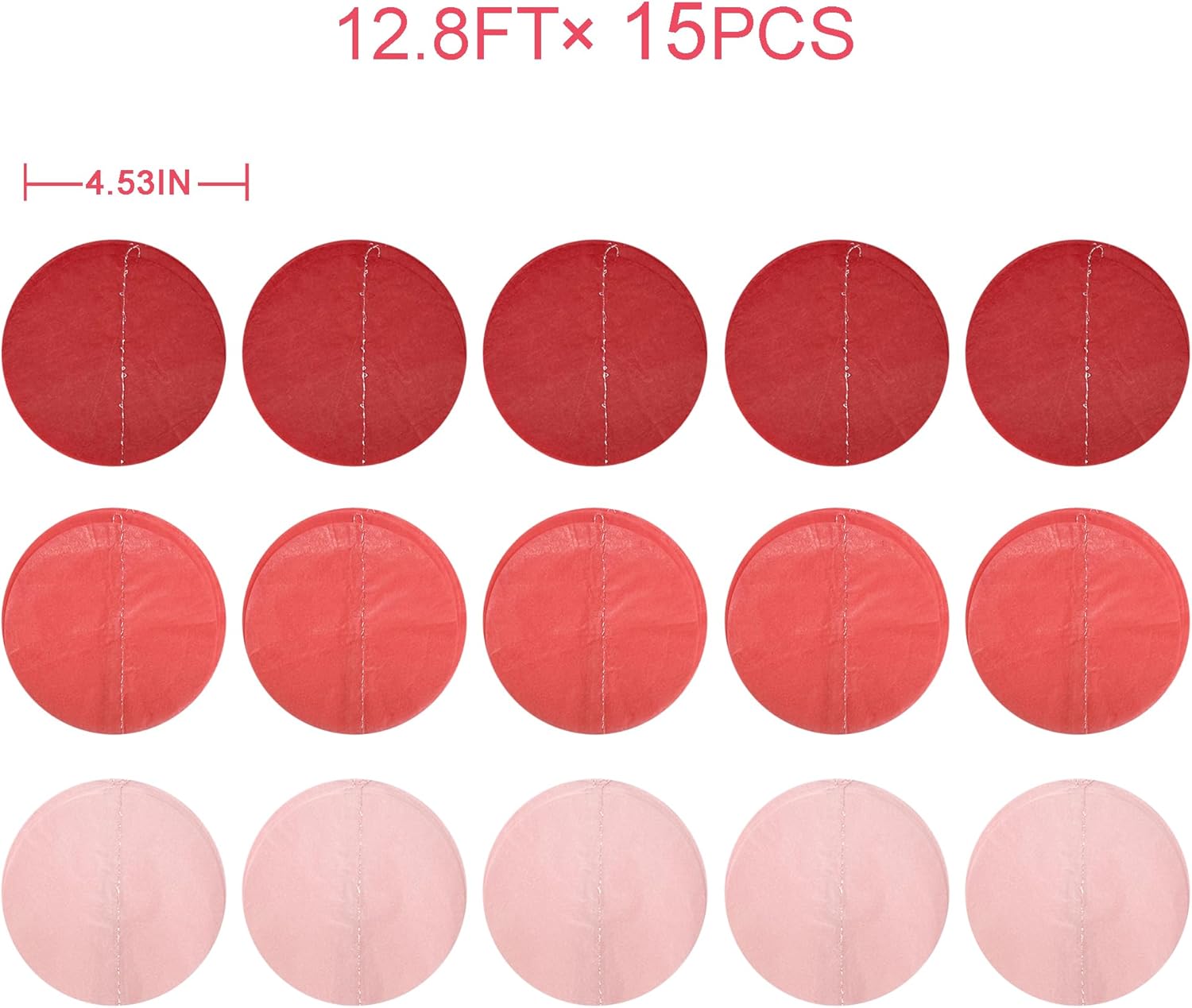 - 🔴PACKAGE CONTAINS- 15 packs of ombre red color circle dot party garland banner,each string is 12.8 feet/3.9 meters with 30 pcs polka dots, Total is 58.5 meters/192 feet.