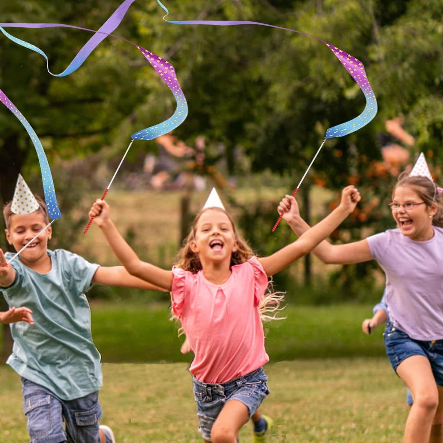 AITIME Ribbon Wands Party Favors for Kids, 20 Pack Rhythmic Gymnastics Ribbon, Girl Birthday ,Outdoor Party Games Supplies, Dance Streamers, Stars Ribbon Dancer