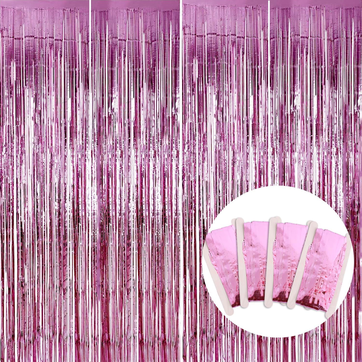 BEISHIDA 4 Pcs Pink Door Streamers Tinsel Curtain Party Streamers Backdrop Fringe Foil Wall Background for Birthday Christmas Wedding Pink Girls Valentine's Day Party Decoration(3.28 ft x 6.56 ft)
