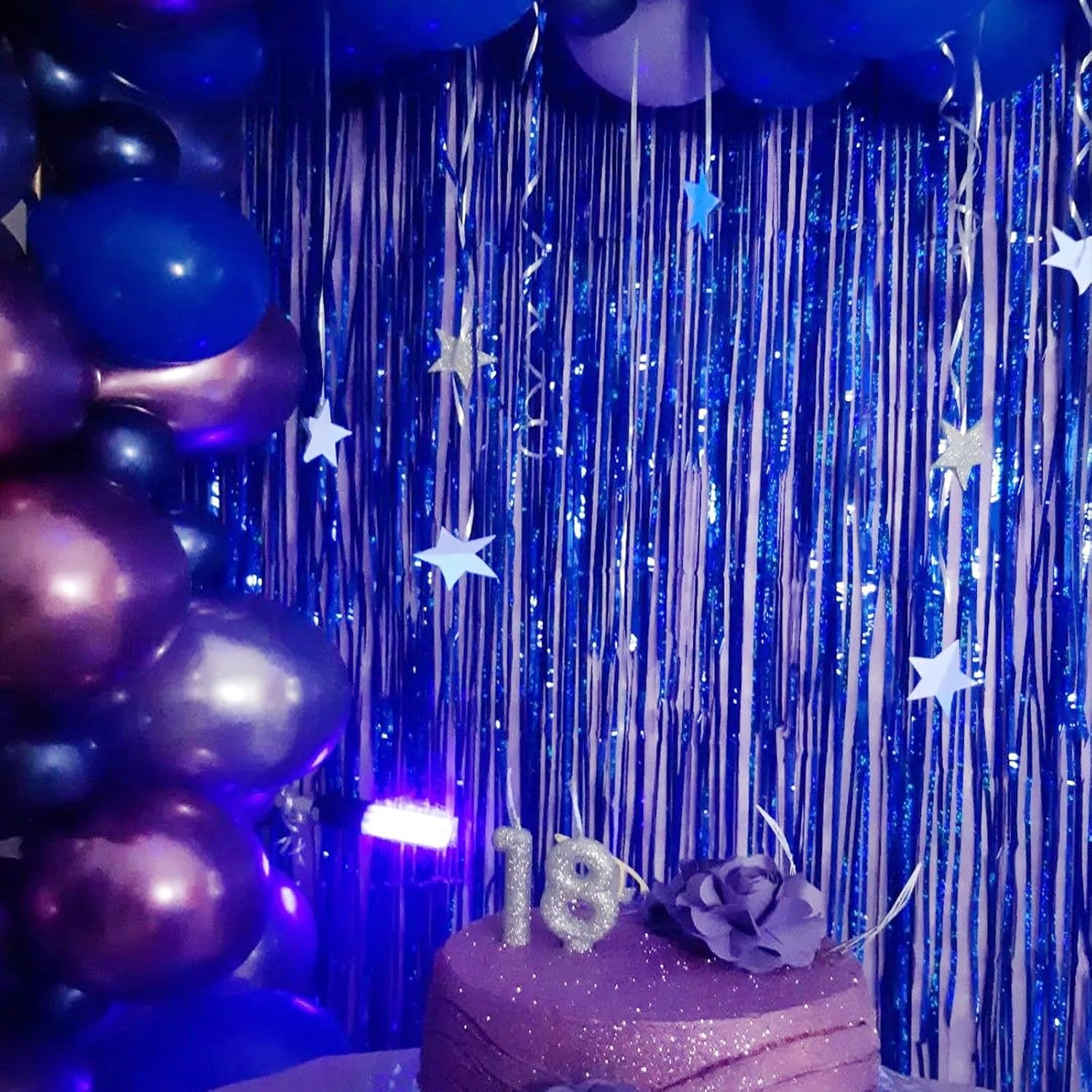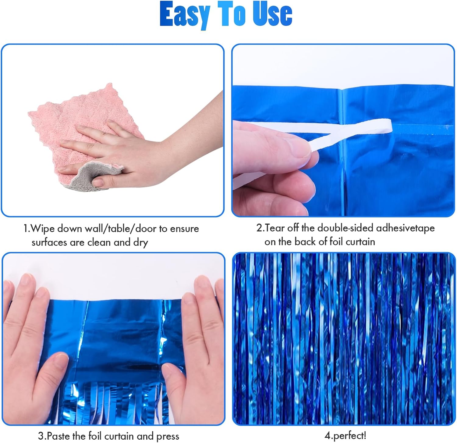 - 🎉PACKAGE INCLUDED : 2 pack of blue foil fringe curtains, the size of each tinsel curtain is 3.3 ft x 8.2 ft, enough length for hanging on a door or covering a wall fully, suitable for any parties.