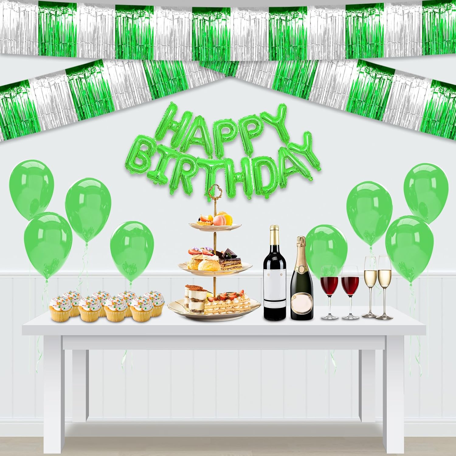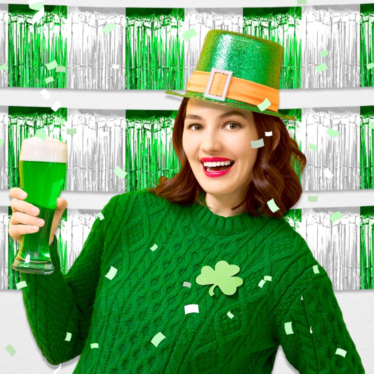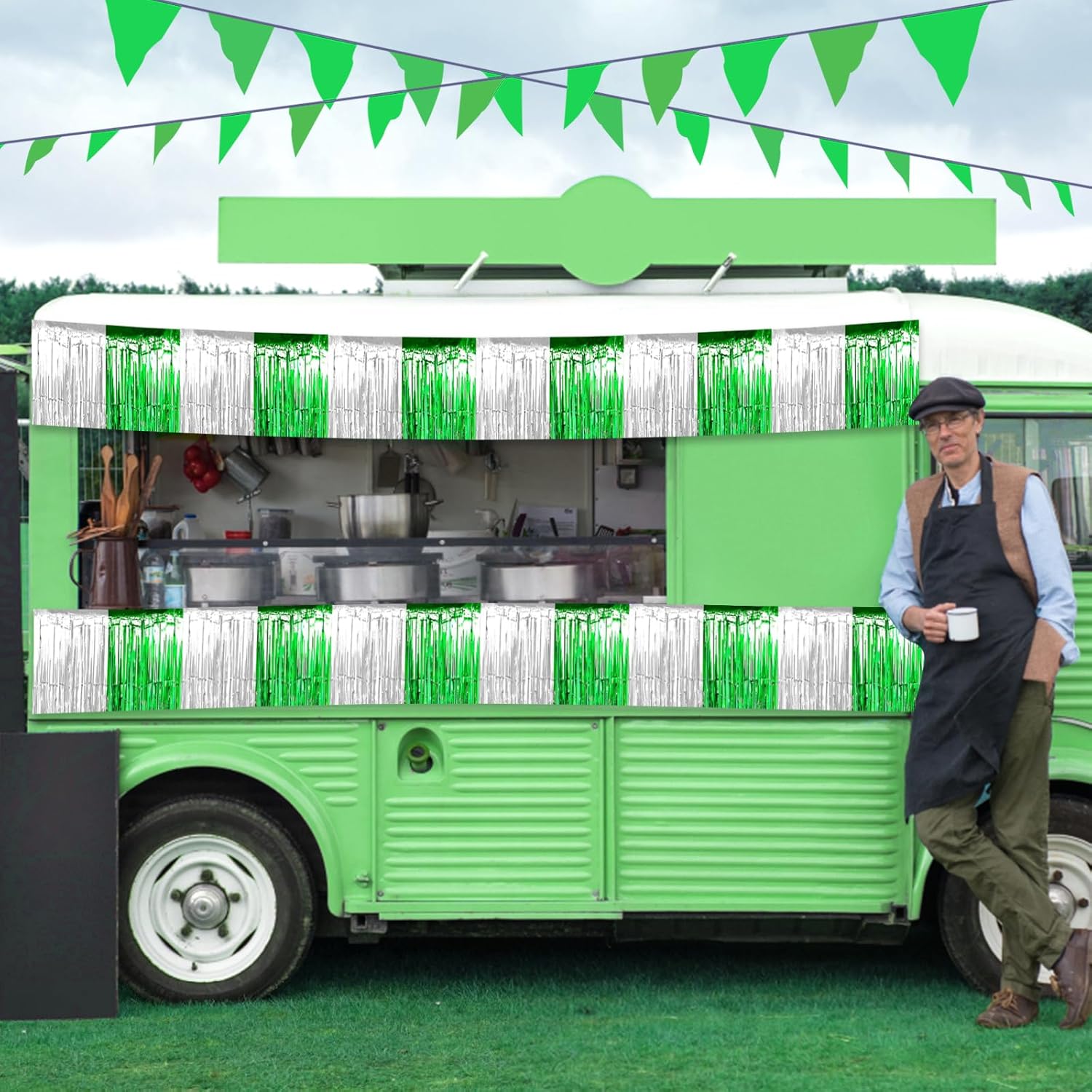 3 Pack 10 Feet Silver Green Foil Fringe Garland Metallic Tinsel Streamers Banner Wall Hanging Curtain Backdrop for Parade Floats, Mother's Day, Wedding, Graduate, Easter, Birthday Party Decorations