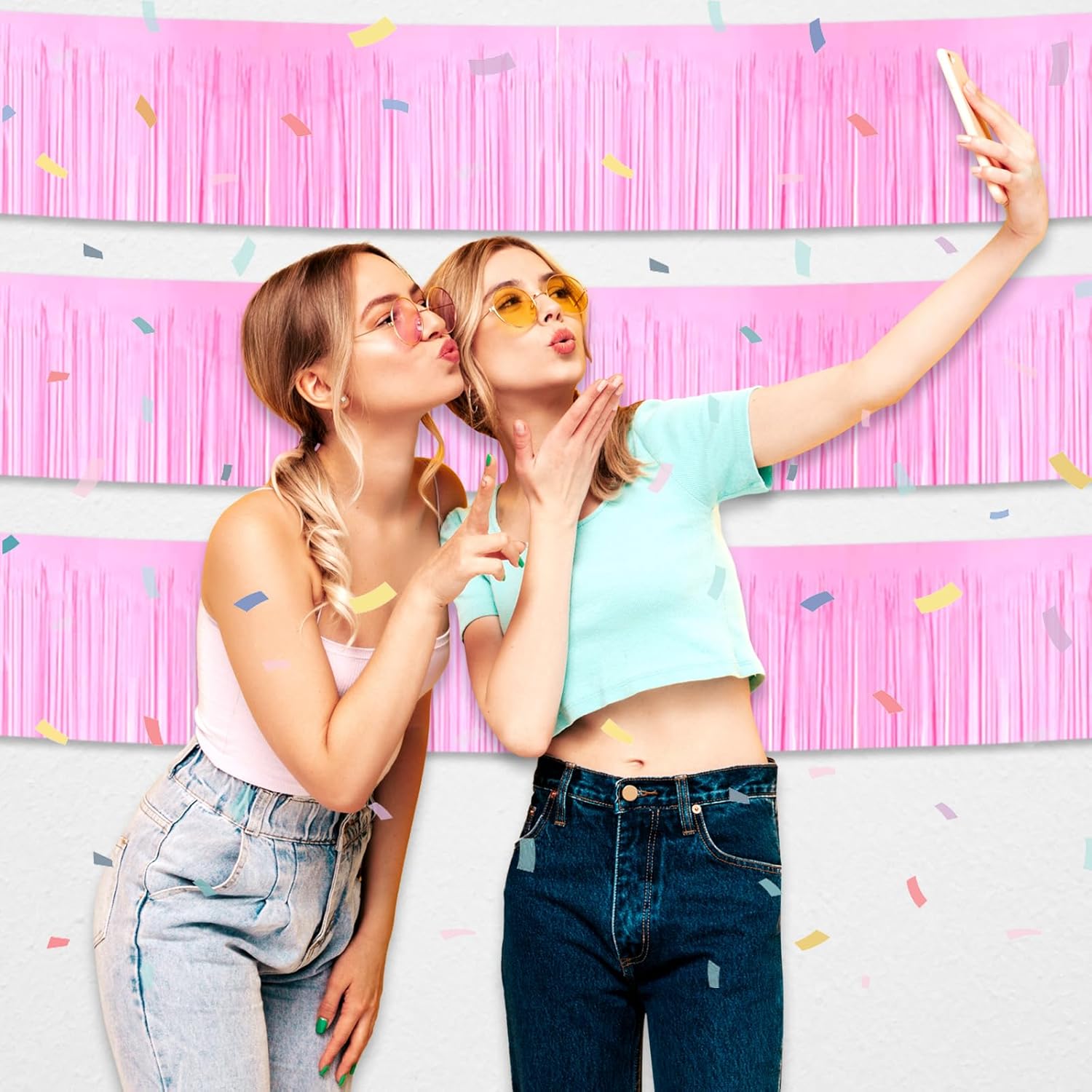 3 Pack 10 Long Macaron Pink Metallic Foil Fringe Garland Wall Hanging Tassle Banner, Mother's Day, Easter, Parade Floats, Birthday, Theme Party, Wedding Party Decorations