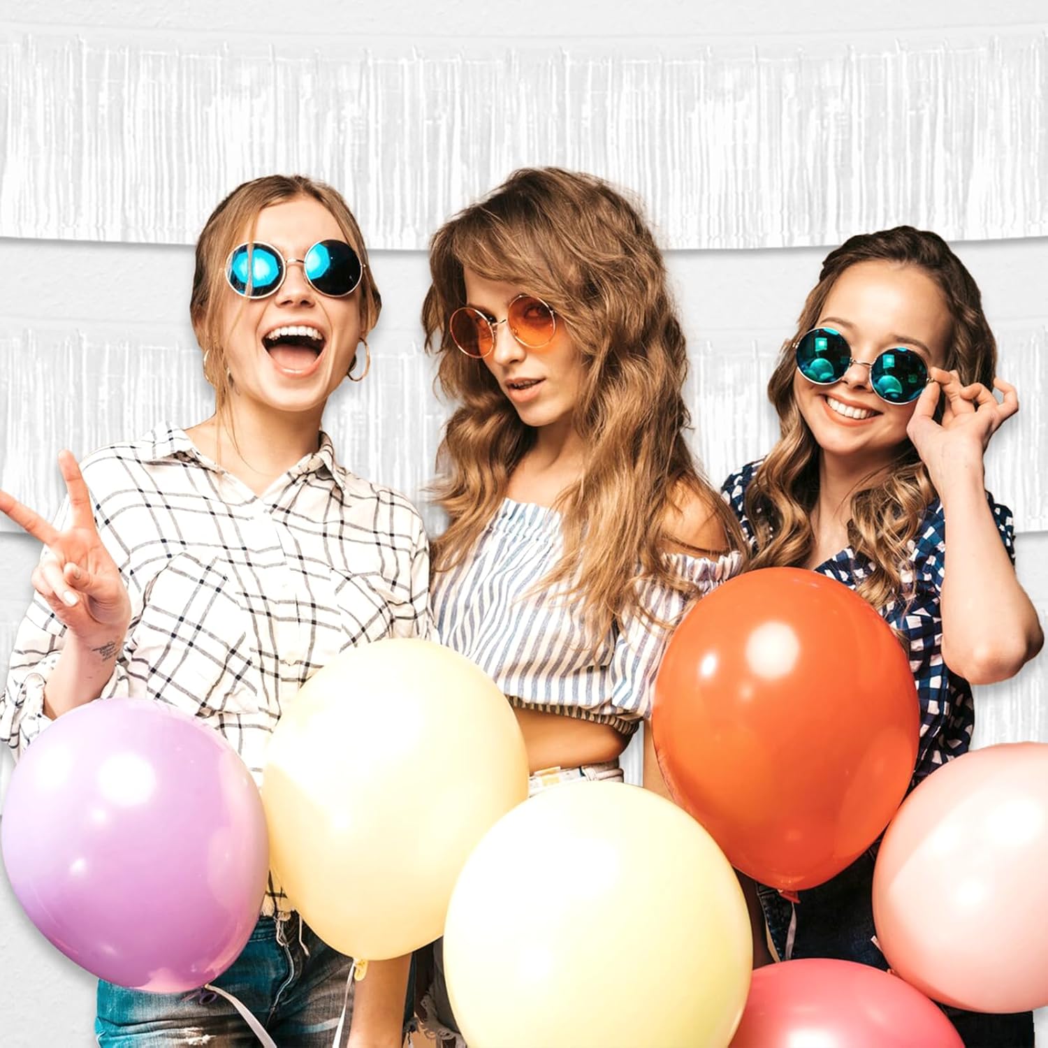 6 Pack 10 Feet White Foil Fringe Garland Metallic Tinsel Streamers Banner Wall Hanging Curtain Backdrop for Parade Floats, Birthday, Graduate, Mother's Day, Wedding Party Decoration