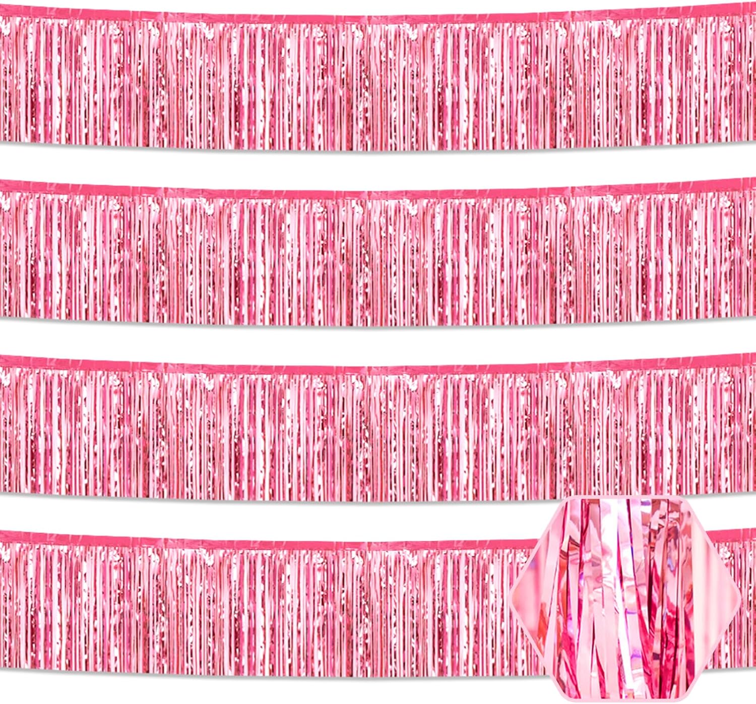4 Pack 10 Feet Pink Foil Fringe Garland Metallic Tinsel Streamers Banner Wall Hanging Curtain Backdrop for Parade Floats, Wedding, Graduate, Mother's Day, Birthday Party Decoration
