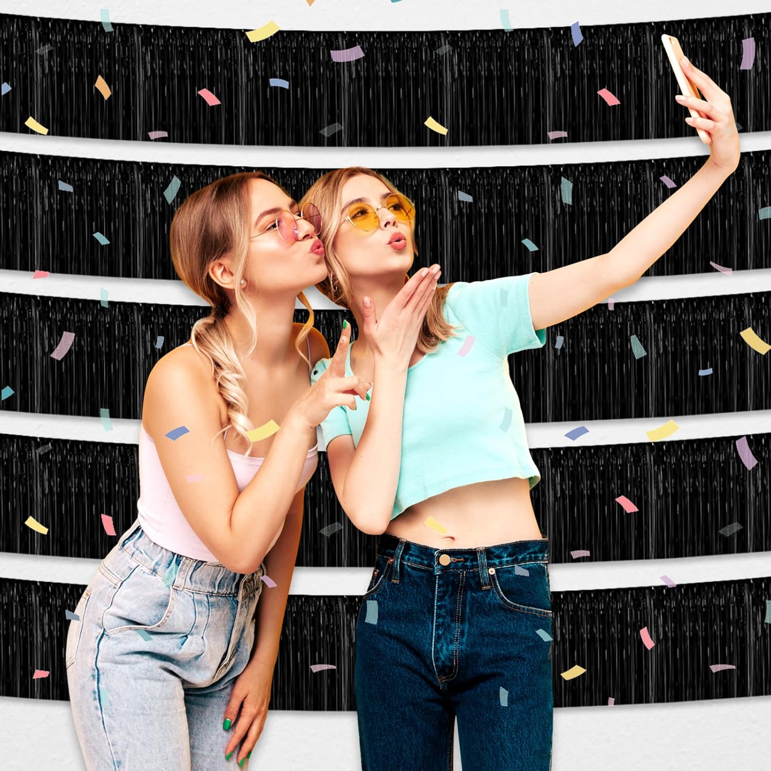 6 Pack 10 Feet Black Foil Fringe Garland Metallic Tinsel Streamers Banner Wall Hanging Curtain Backdrop for Parade Floats, Birthday, Graduate, Mother's Day, Wedding Party Decoration