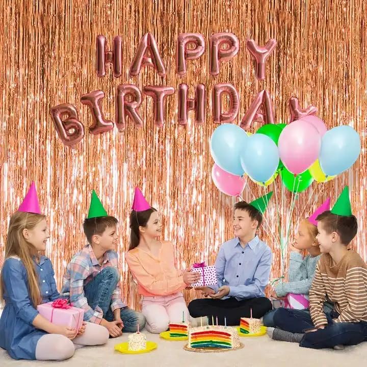 QRabbit 4 Pack Foil Fringe Backdrop Curtains, Rose Gold Party Streamers Photo Booth Props for Birthday Graduation Engagement Wedding Baby Shower Christmas Party Decorations
