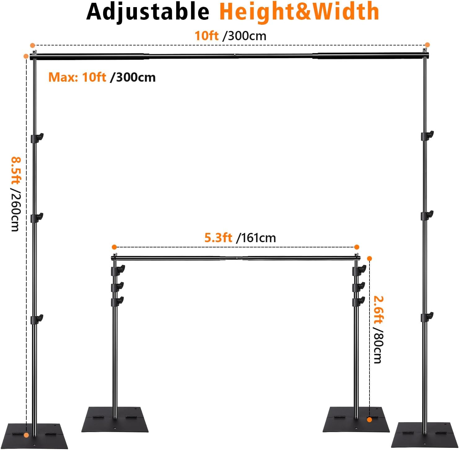 Pipe and Drape Photography Backdrop Stand Kit Adjustable Photo Background Stand 10ft x 8.5ft with Metal Base for Parties Weddings Birthday Party Events Photo Booth with 4 Clamps,Carrying Bag.