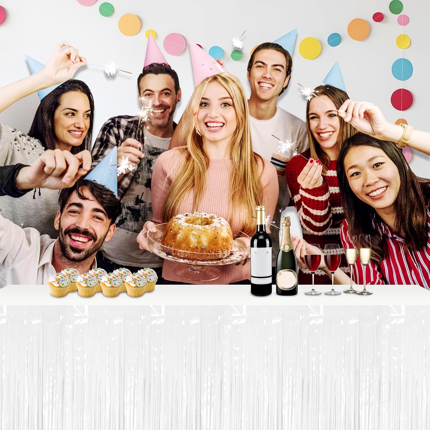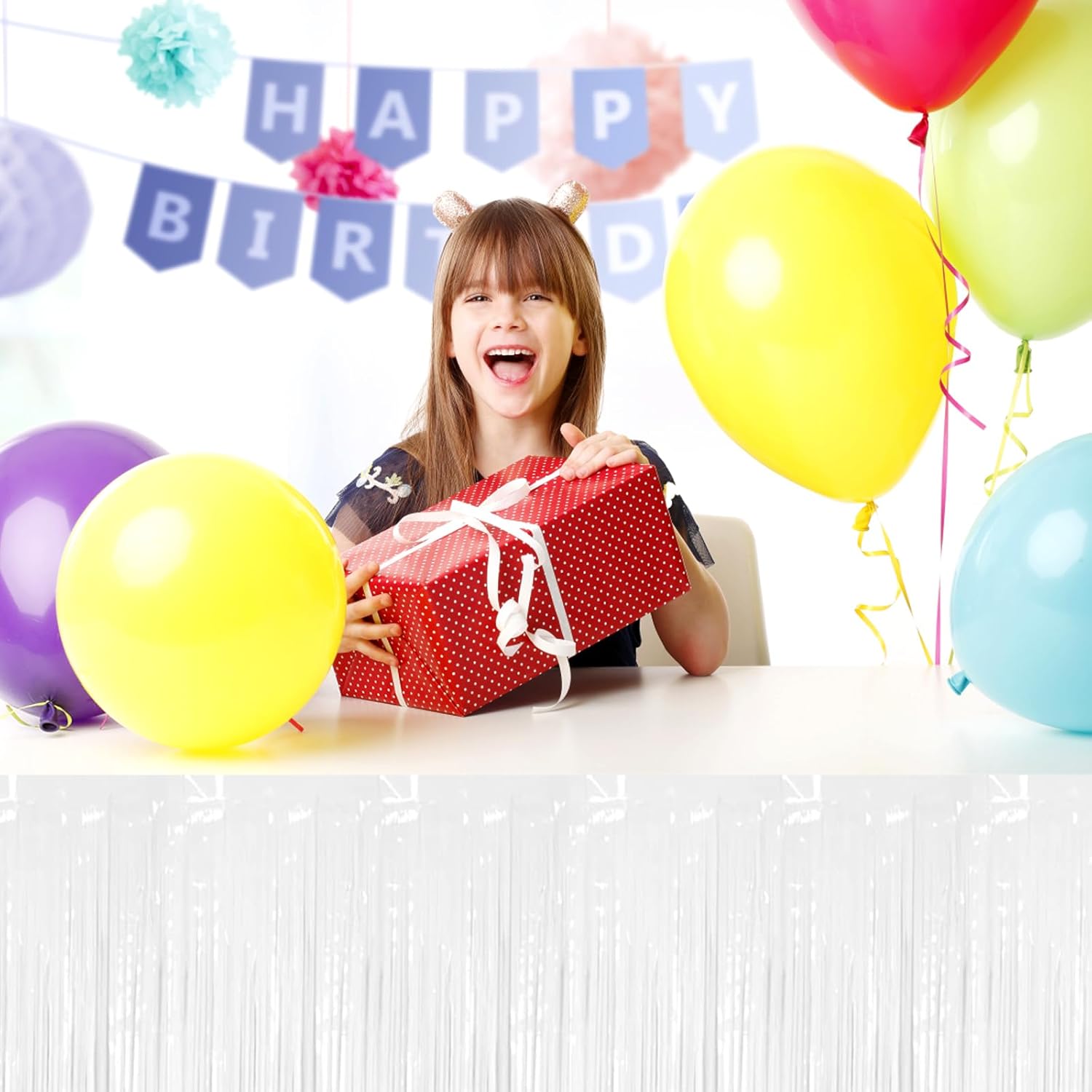 3 Pack 29x108 Inch Macaron White Foil Fringe Table Skirts Metallic Banner for Tinsel Streamer Garland Backdrop for Parade Floats Wedding Thanksgiving Birthday Christmas Halloween Party Decoration
