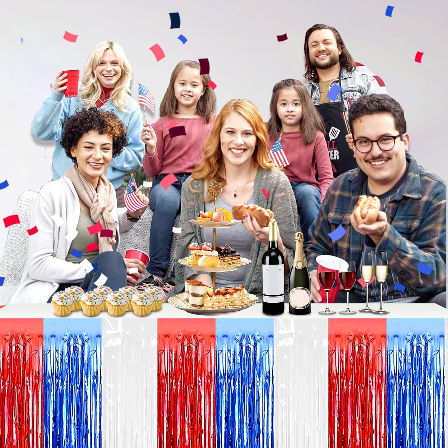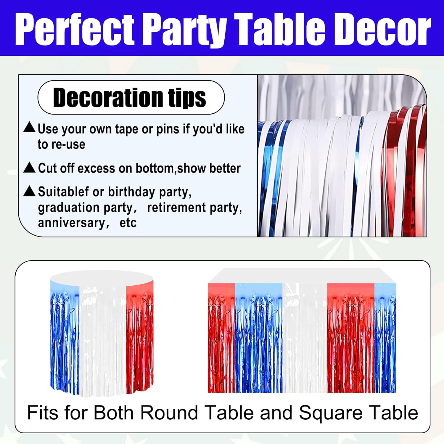 3 Pack 29x108 Inch White Blue Red Foil Fringe Table Skirts Metallic Banner for Tinsel Streamer Garland Backdrop for Parade Floats Wedding Thanksgiving Birthday Christmas Halloween Party Decoration