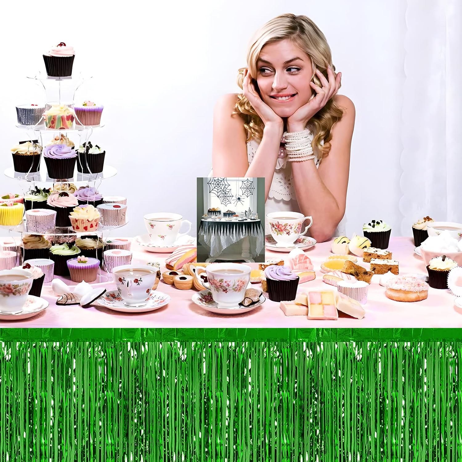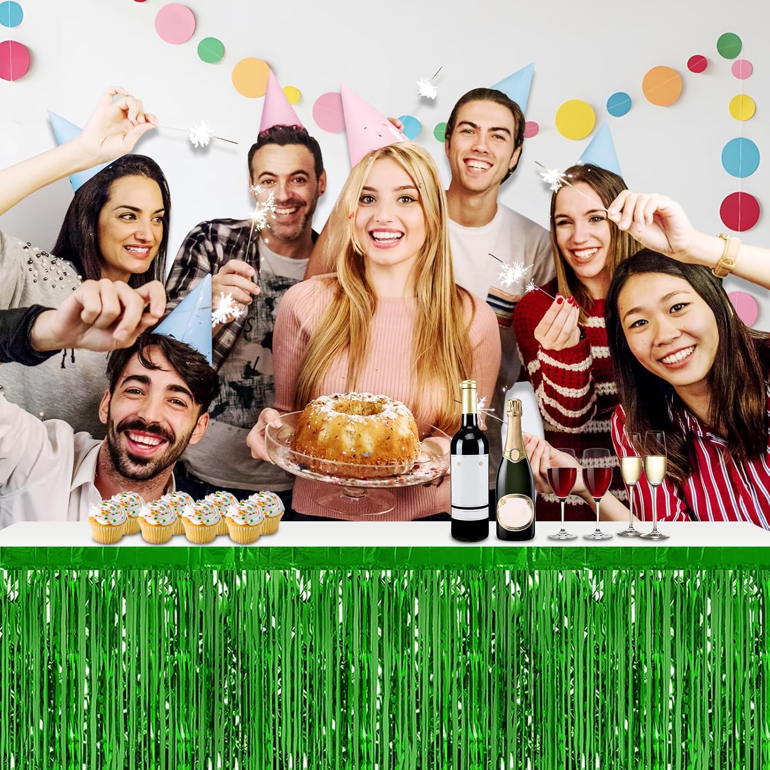 3 Pack 29x108 Inch Green Foil Fringe Table Skirts Metallic Banner for Tinsel Streamer Garland Backdrop for Parade Floats Wedding Thanksgiving Birthday Christmas Halloween Party Decoration