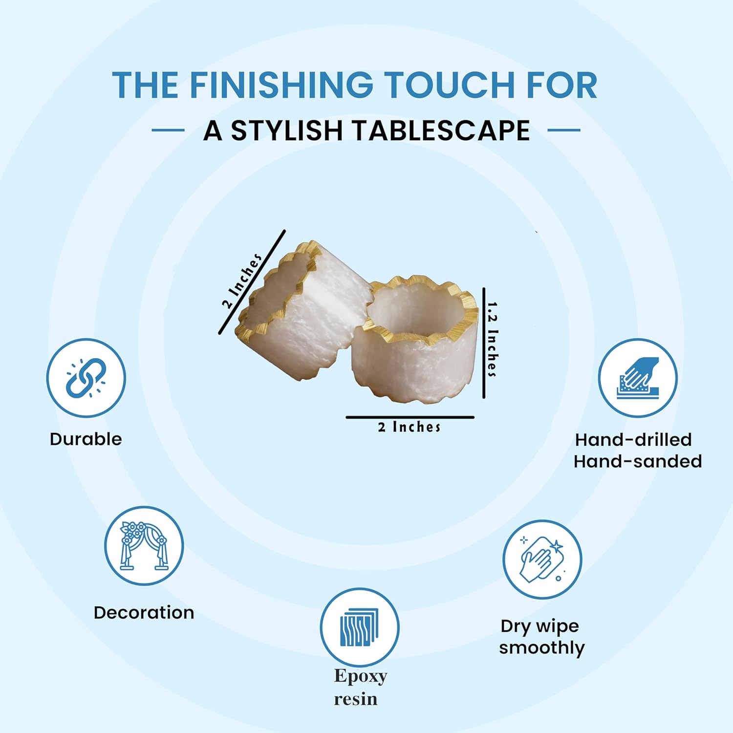 - ✅ Handmade Artisan Variations: Slight differences in color, size, and texture add unique charm to each resin napkin ring piece.