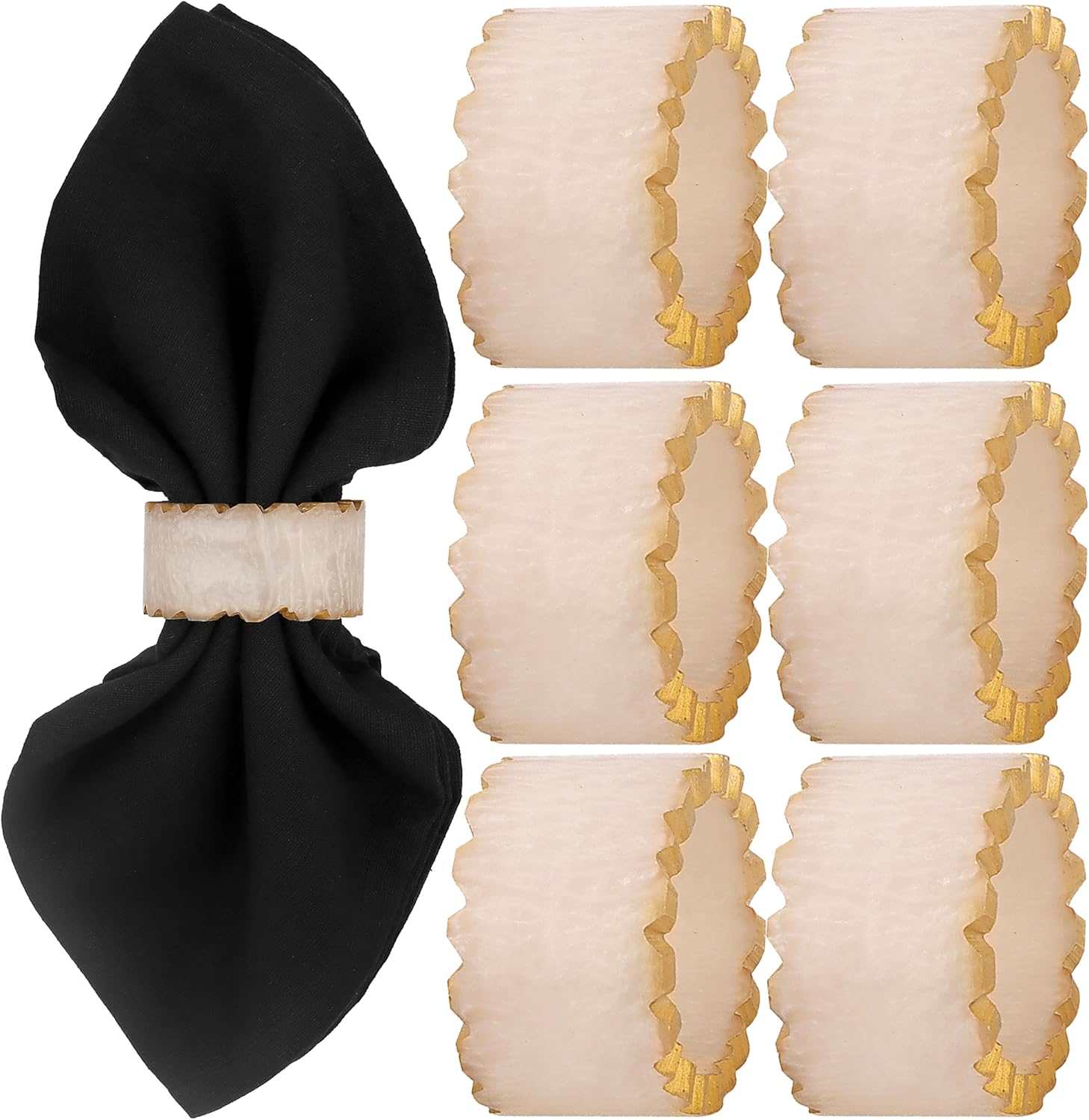Rustic Epoxy Resin Napkin Rings Set of 6 - Napkin Holders for Parties, Dining, Family Gatherings, Weddings, Holidays, Décor, Gifting Durable Tabletop Decor (Ivory) CLEENTABLE