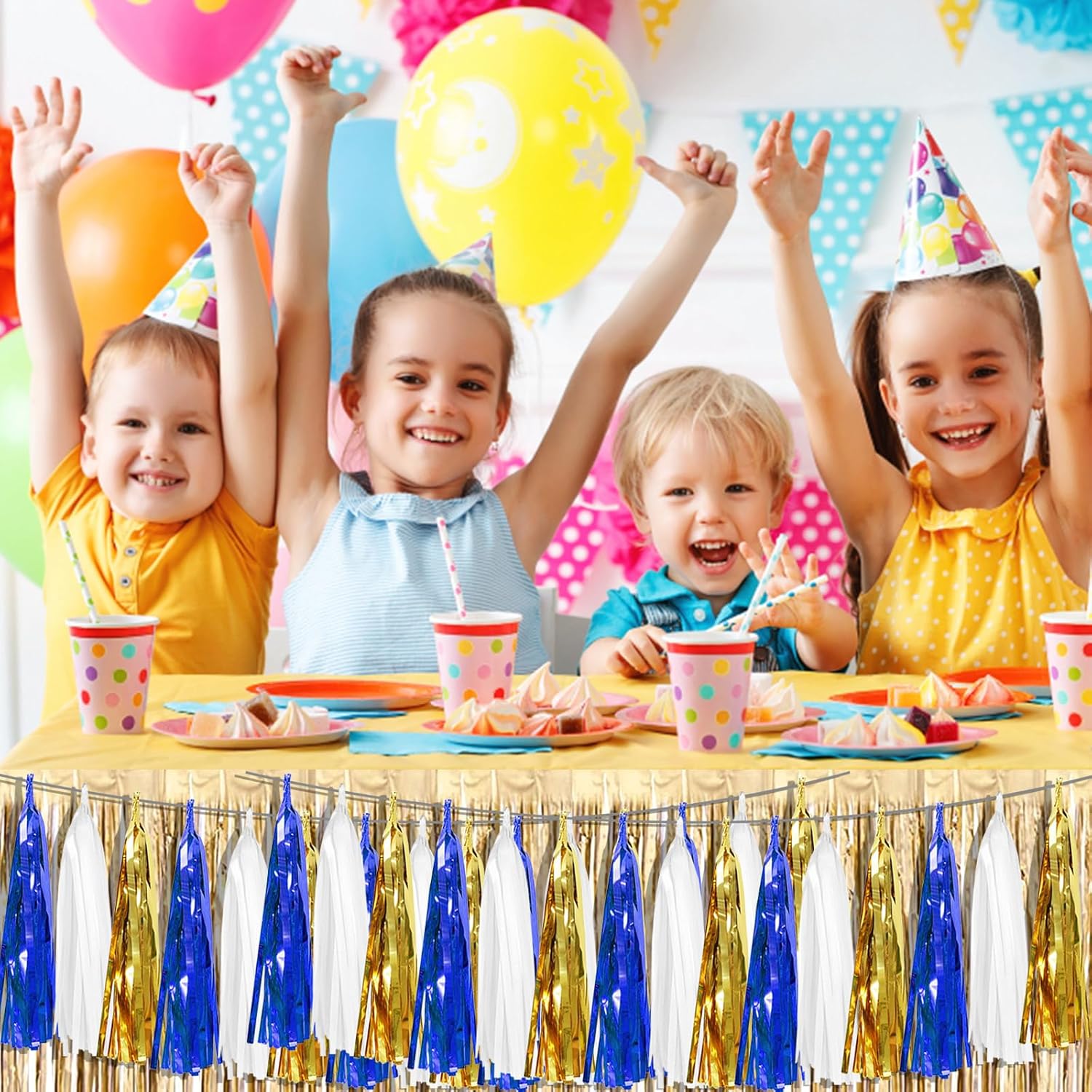 - 【Perfect Party Decoration】The navy blue white gold tinsel garlands are designed in a metallic Fringe, bright, and beautiful, at the same time, they shine in the sun, and these gorgeous tassel garlands create a wonderful backdrop or centerpiece for your party space. and bring you, your family, and your friend's good Visual effects. your party many emotional and touching moments where a lot of pictures will be taken and everybody will have a wonderful time together.