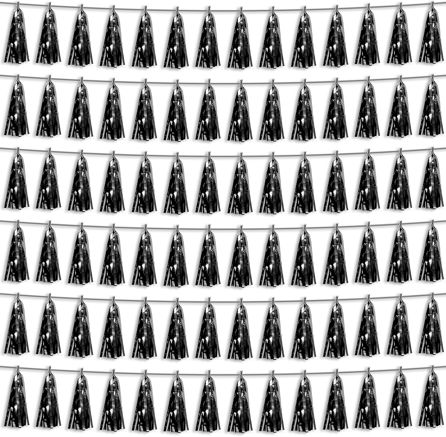 6P Black Foil Fringe Metallic Tassel Streamers Banner Tassel Garland for Parade Floats, Bachelorette, Wedding, Birthday, Graduation, Christmas, Bridal/Baby Shower Party Decorations