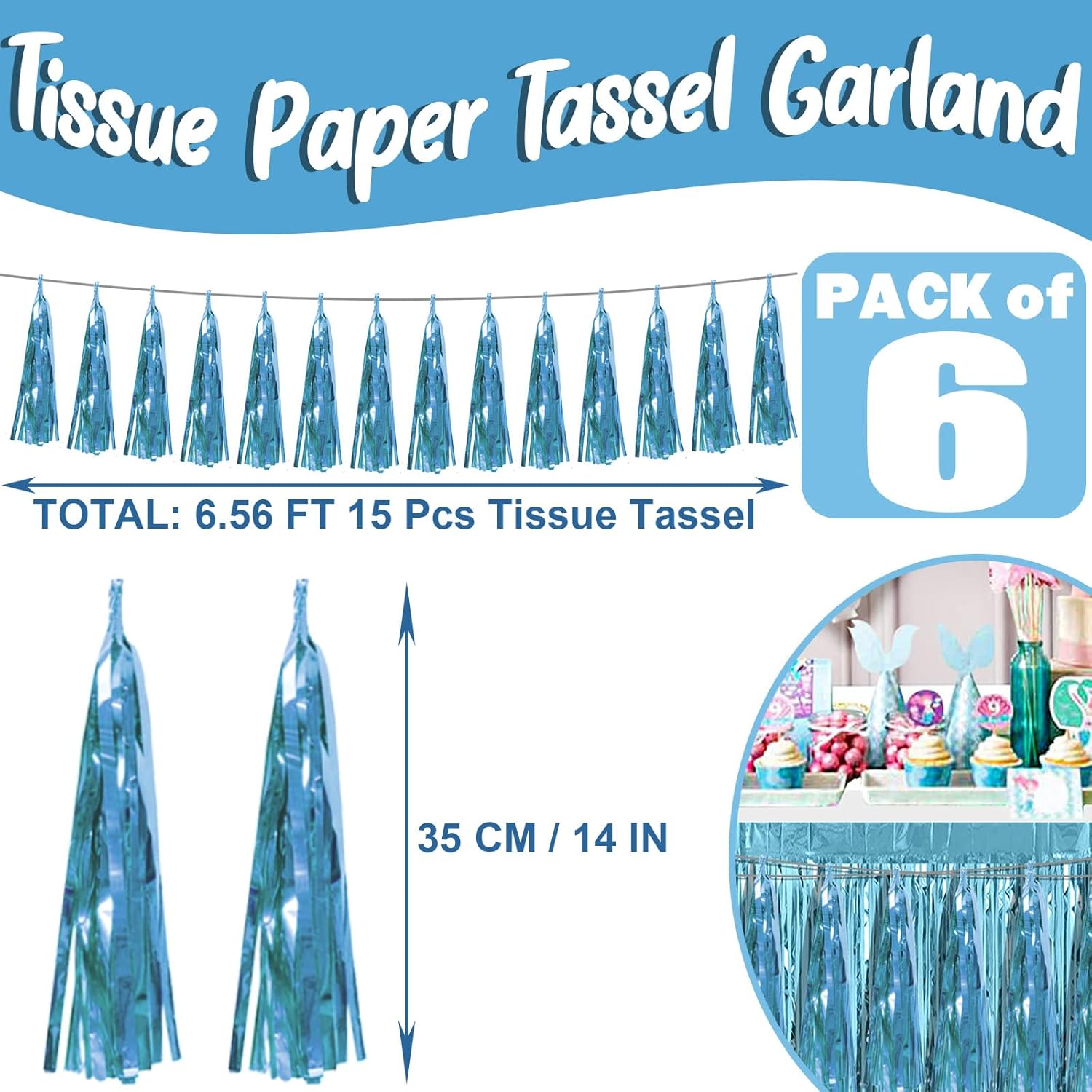 - 【Light Blue Party Supplies Set】: The total length of the light blue birthday tassels banner is 59 feet, divided into 6 strips, each 9.8 feet long. Each banner contains 15 tassels, and each tassel measures 14 inches, for birthday decorations many occasions, and so on