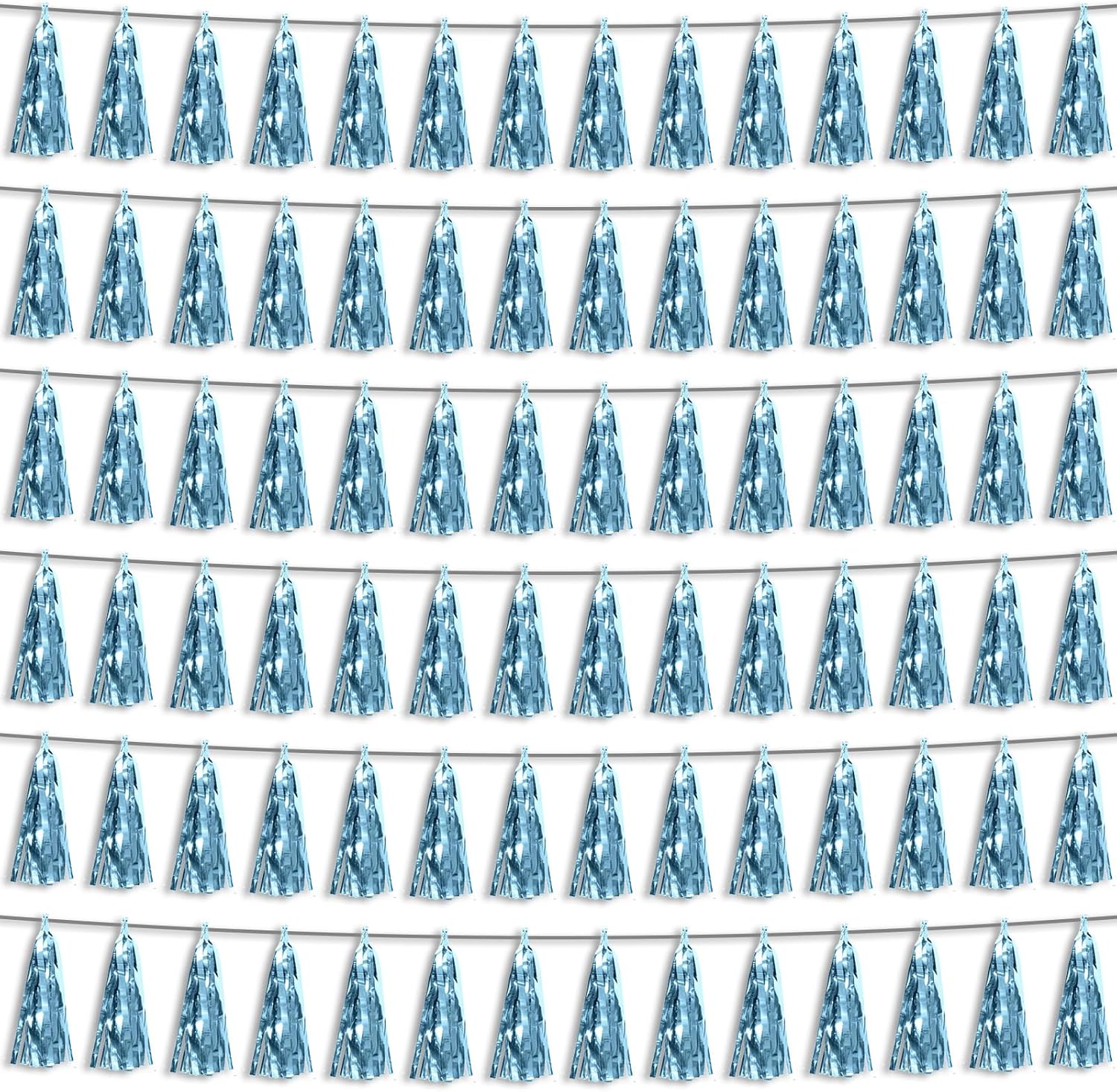 6P Light Blue Foil Fringe Metallic Tassel Streamers Banner Tassel Garland for Parade Floats, Bachelorette, Wedding, Birthday, Graduation, Christmas, Bridal/Baby Shower Party Decorations